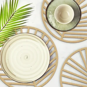 Dale un toque de glamour y diseño a tu mesa con este juego de posavasos en color oro y a su vez protégela de las incómodas manchas de los vasos y copas. La pieza está fabricada en madera pintada y vienen con una base de madera.