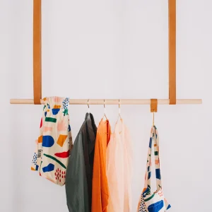 Perchero para techo de madera y cuero