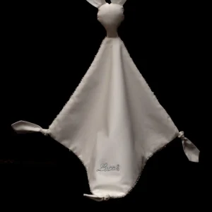 Doudou algodón blanco nombre bordado