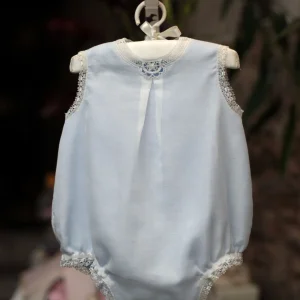 Pelele de lino para bebé bordado a mano