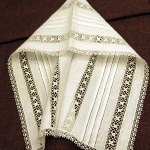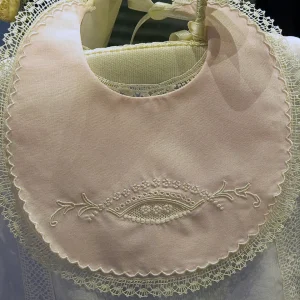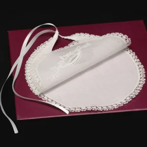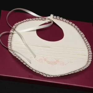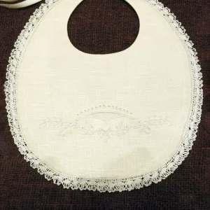 Babero de lino con encaje de bolillos