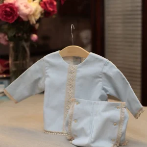 Conjunto camisa y ranita de piqué azul y encaje