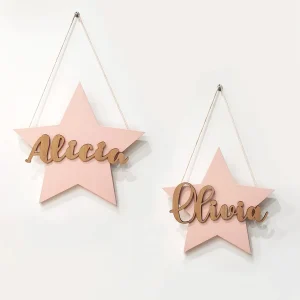 Estrella y Nombre en Madera Personalizado para colgar