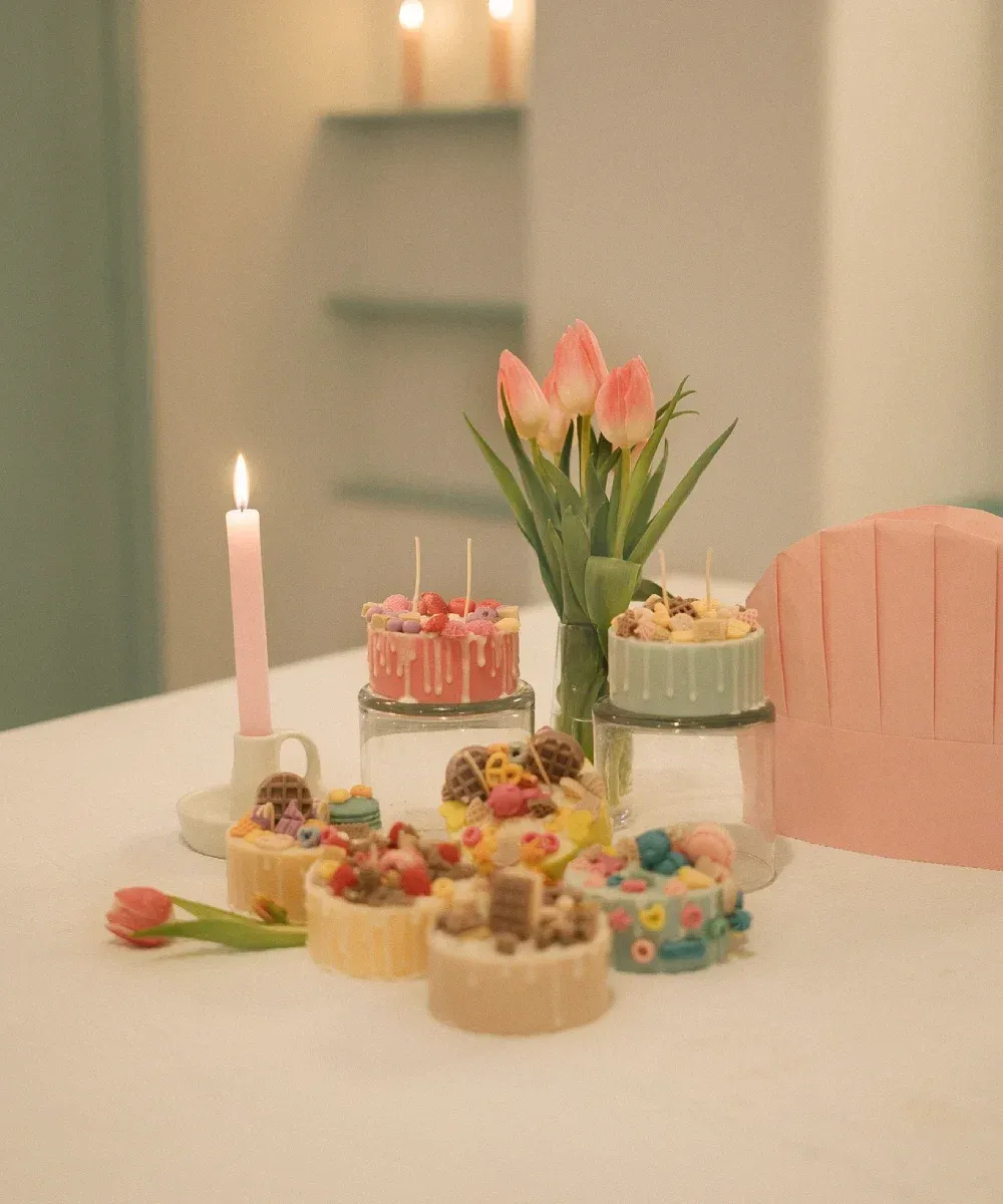 Si buscas un plan creativo y original, nuestro 🍰 Taller de Velas de Repostería en Barcelona 🍫 es perfecto para ti 🤩. Aprenderás a crear velas decorativas y aromáticas en forma de pastel 🍰 (no se pueden comer 😜), utilizando cera de soja ecológica 🌱 y toppings únicos como fresas 🍓, ositos 🧸, lazos 🎀 y muuuchos más. Diseña tu pastel más cute y coquette, ideal para decorar tu rincón favorito 💕 o regalar algo único.