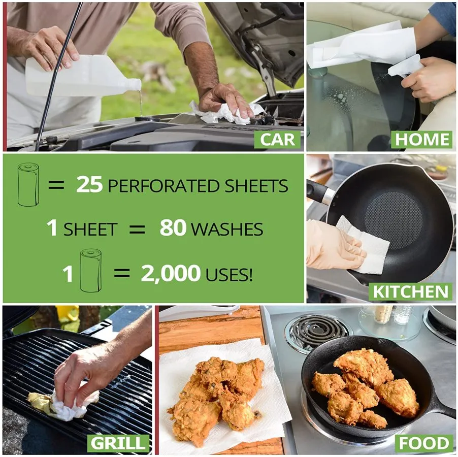 • Ahorro de dinero – Cada toallita es lavable a 40 grados. ¡Cada uno de los paños se pueden lavar hasta 85 veces, lo que hace que cada rollo de cocina sea el equivalente a 1700 toallas de cocina de papel; ¡Además, muy económico!
