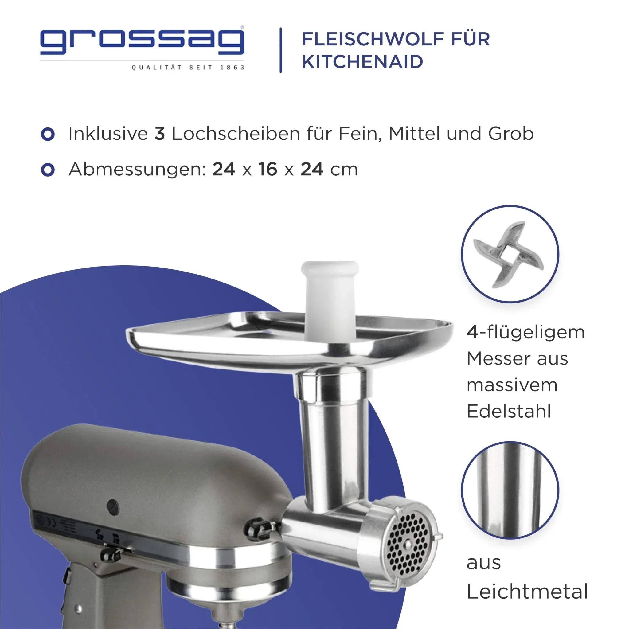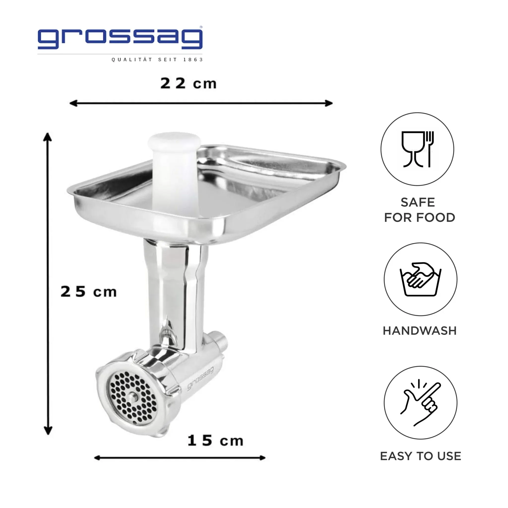 • Incluye 3 discos perforados de acero inoxidable (fino 3 mm, medio 4,5 mm, grueso 8 mm)