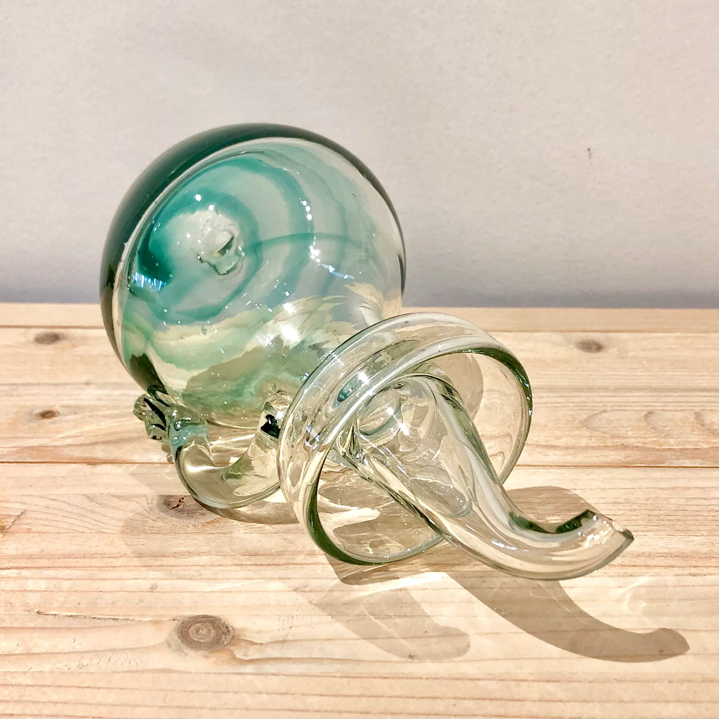 El cuerpo tiene una suave espiral en tono turquesa que permite ver el interior.
