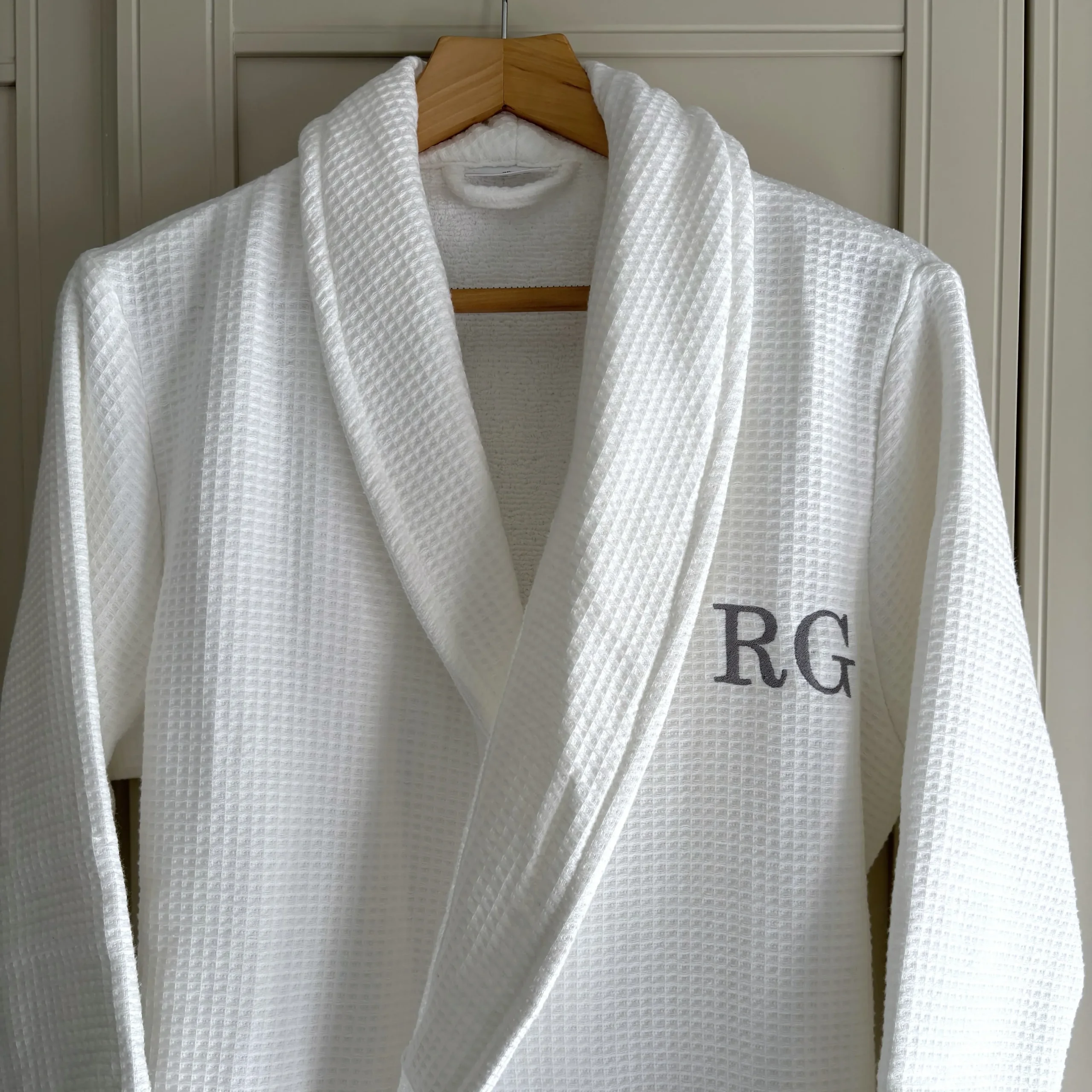 Albornoz 100% algodón premium de muy alto gramaje color Blanco. Con textura waffle en el exterior y esponjoso rizo en el interior. Fabricado en Portugal.