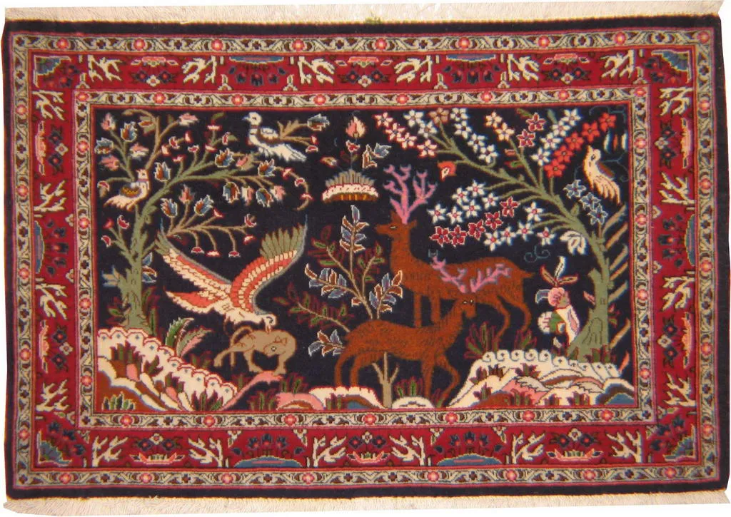 Alfombra persa. Anudada a mano. region de Ghom, Lana Virgen. Medidas: 066×100 cm.