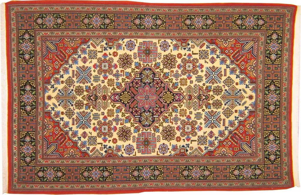 Alfombra persa. Anudada a mano. region de Ghom, Lana Virgen. Medidas: 158×102 cm.
