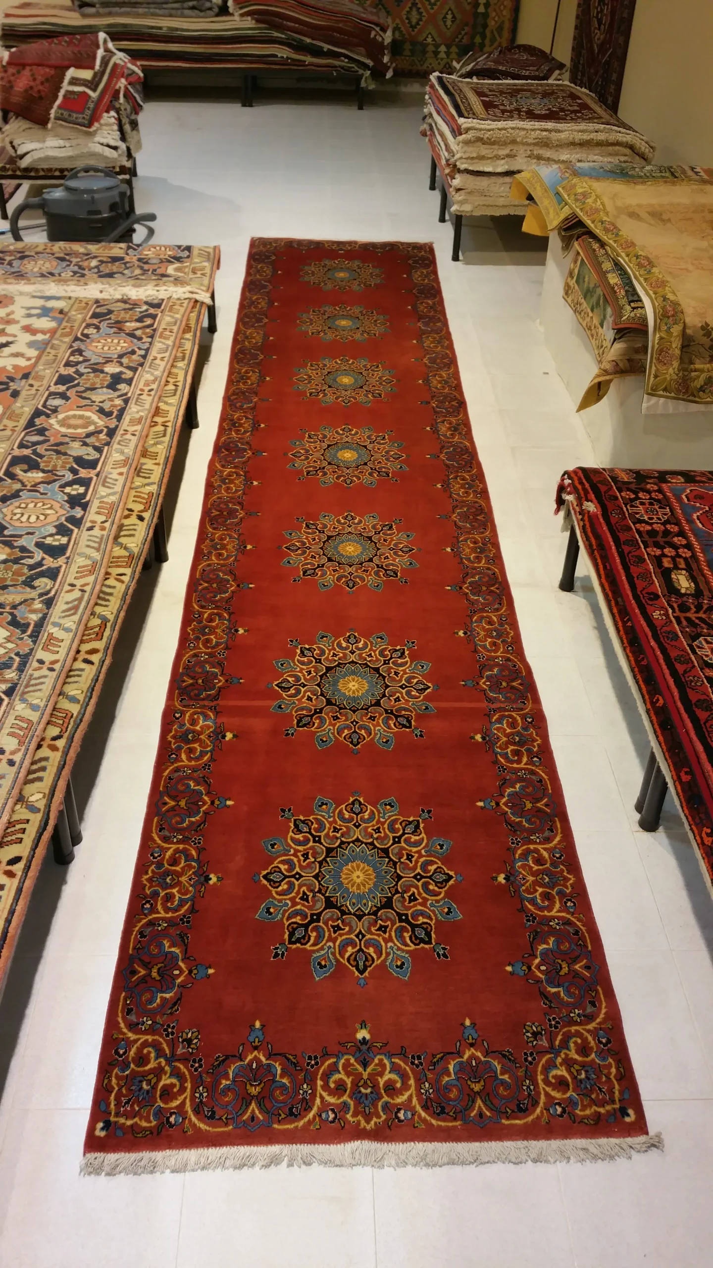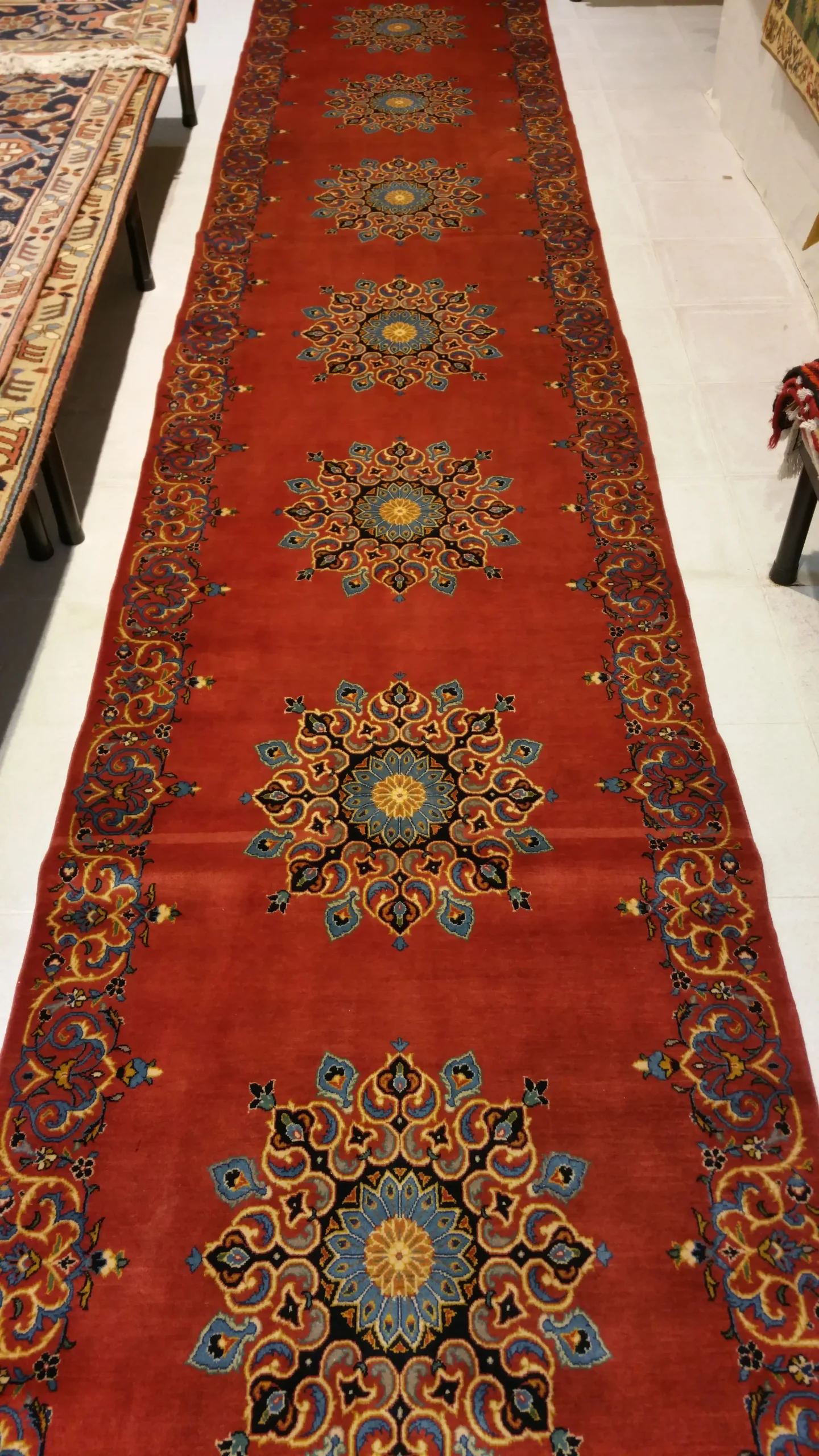 Alfombra persa. Anudada a mano. region de Kashan Antiqua, Lana Virgen. Medidas: 527×103 cm.