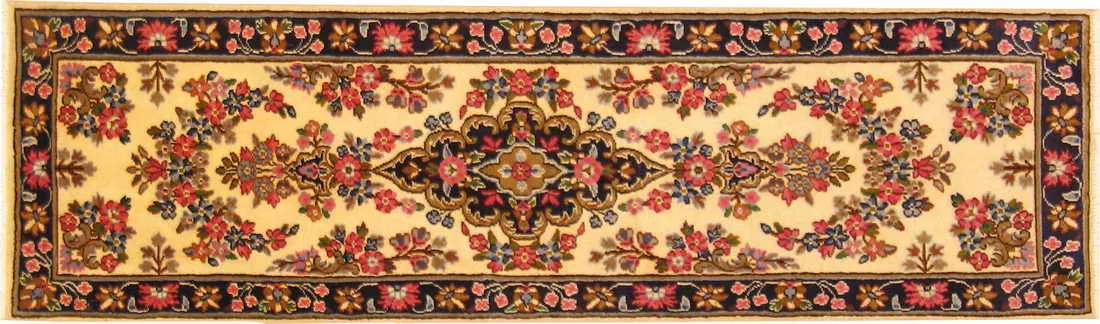Alfombra persa. Anudada a mano. region de Kerman, Lana Virgen. Medidas: 212×061 cm.