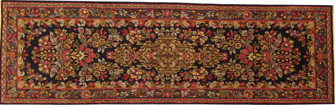 Alfombra persa. Anudada a mano. region de Kerman, Lana Virgen. Medidas: 230×070 cm.