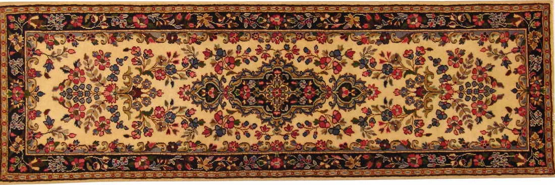 Alfombra persa. Anudada a mano. region de Kerman, Lana Virgen. Medidas: 231×076 cm.