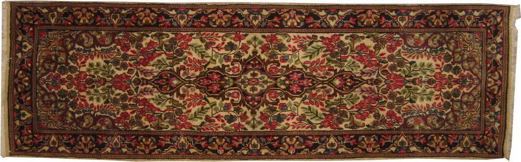 Alfombra persa. Anudada a mano. region de Kerman, Lana Virgen. Medidas: 237×073 cm.