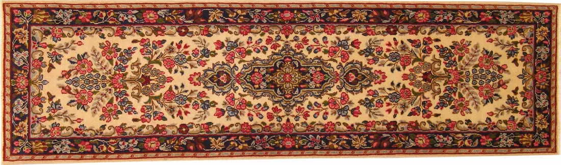 Alfombra persa. Anudada a mano. region de Kerman, Lana Virgen. Medidas: 238×067 cm.