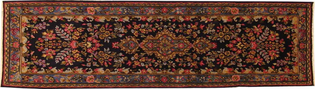 Alfombra persa. Anudada a mano. region de Kerman, Lana Virgen. Medidas: 243×067 cm.