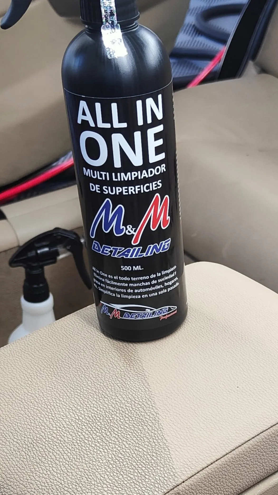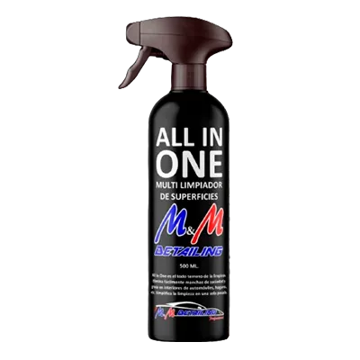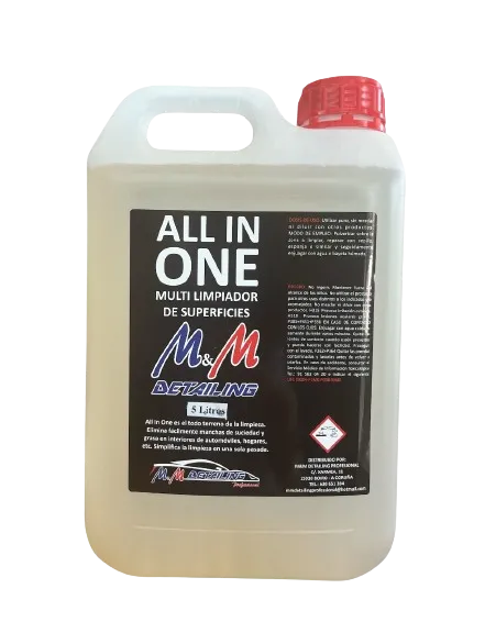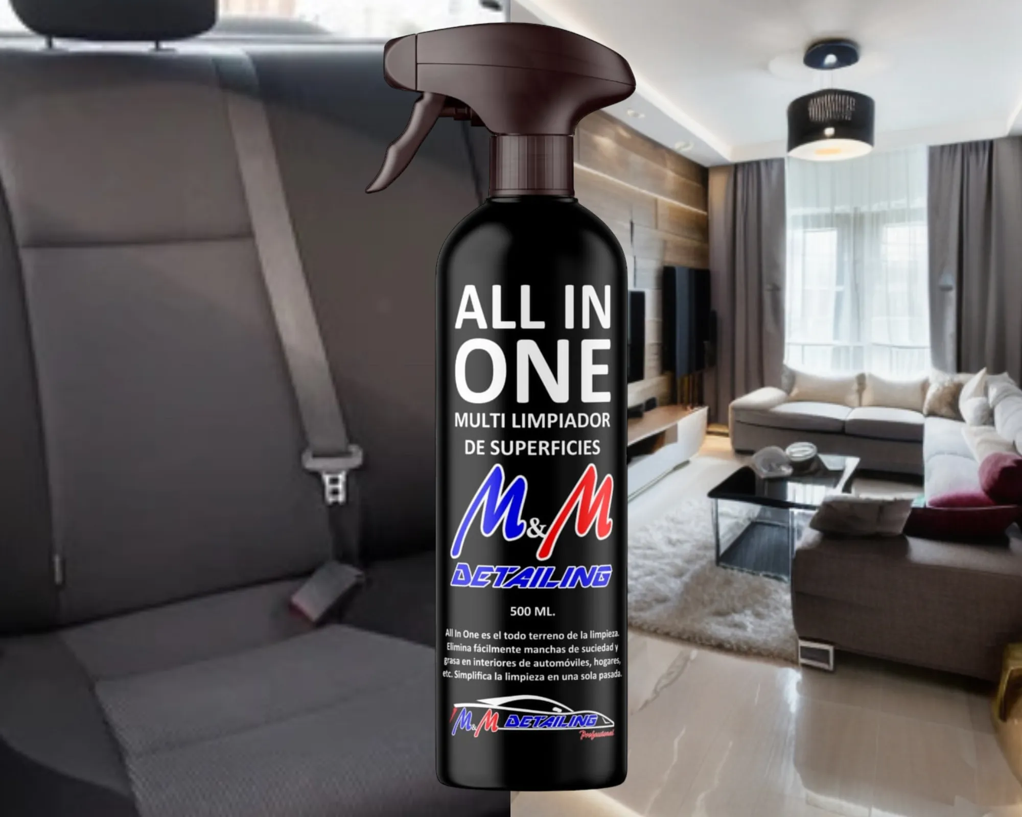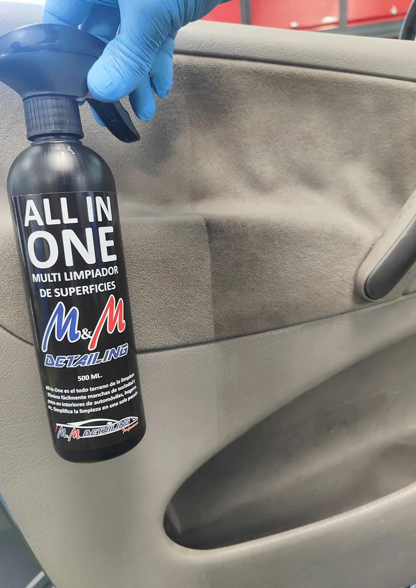 Formato profesional de nuestro limpiador ALL IN ONE un todoterreno de la limpieza apto para quienes buscan la excelencia. Elimina todo tipo de manchas de suciedad y grasa en interiores de vehículos y hogares con un solo producto.
