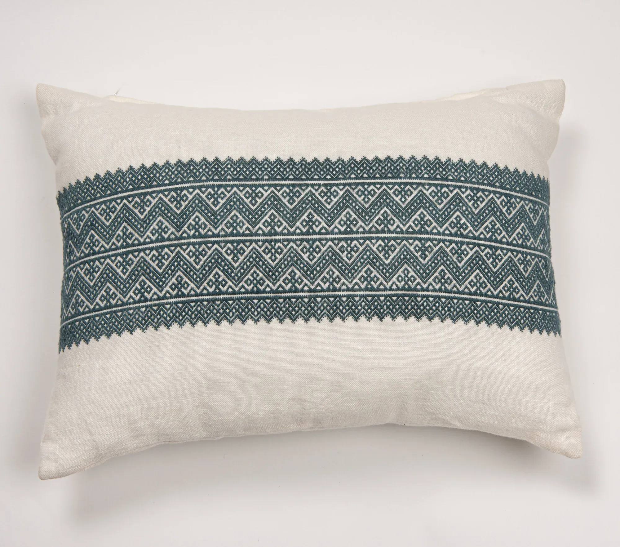 Almohadones de lino confeccionados y bordado a mano con la técnica artesanal de tejidillo. Empleada tradicionalmente en los adornos de las camisas y otras ropas de ajuar doméstico, ahora bajo una interpretación moderna y con nuevas gamas cromáticas.