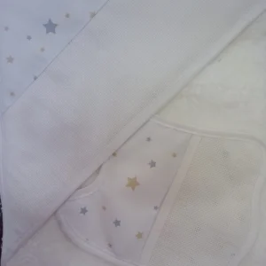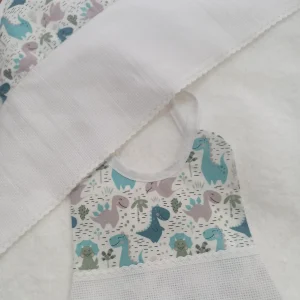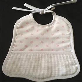 Babero Lunar Rosa, con pieza de tela aida para bordar en punto de cruz.