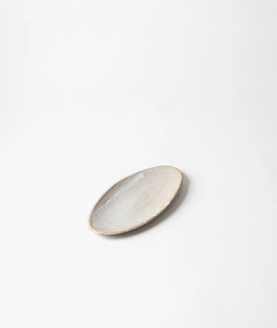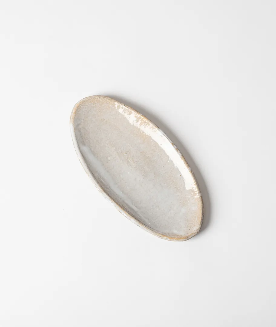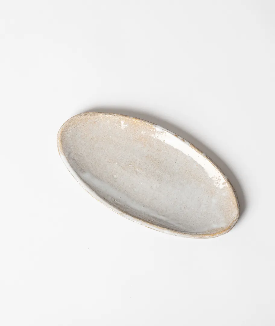 Fuente pequeña ovalada para aperitivo realizada en gres.