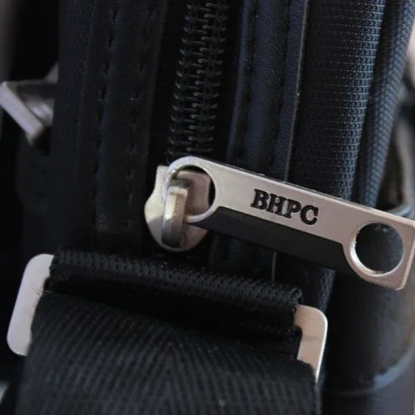 2 bolsillos con cremallera delante y atrás y 2 interiores.