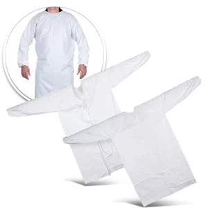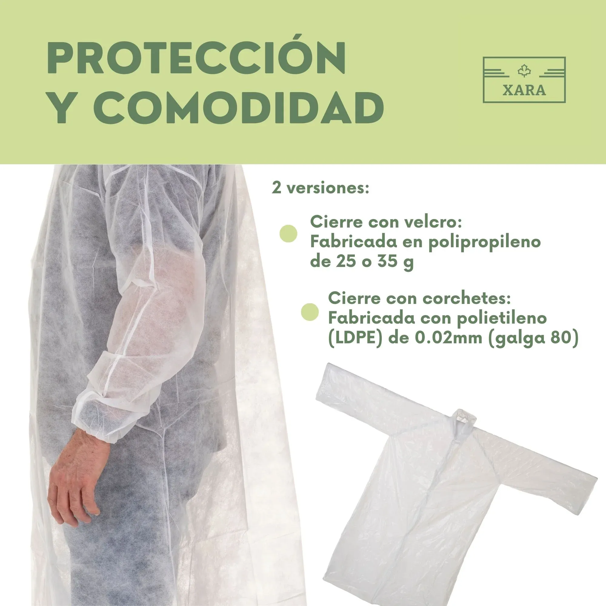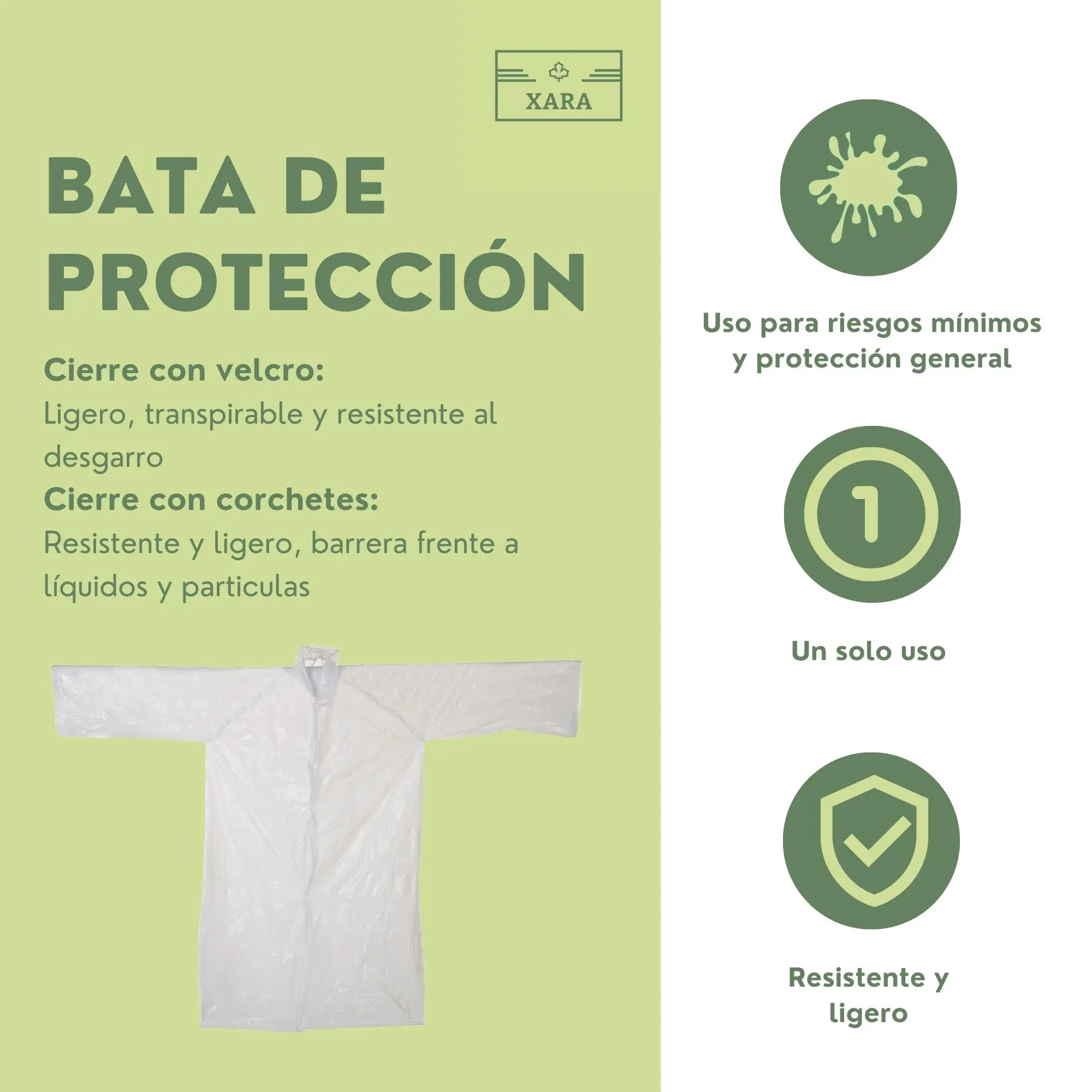 ✅ CARACTERÍSTICAS: Bata de un solo uso con cuello tipo camisa y manga larga con elásticos en la empuñadura.
