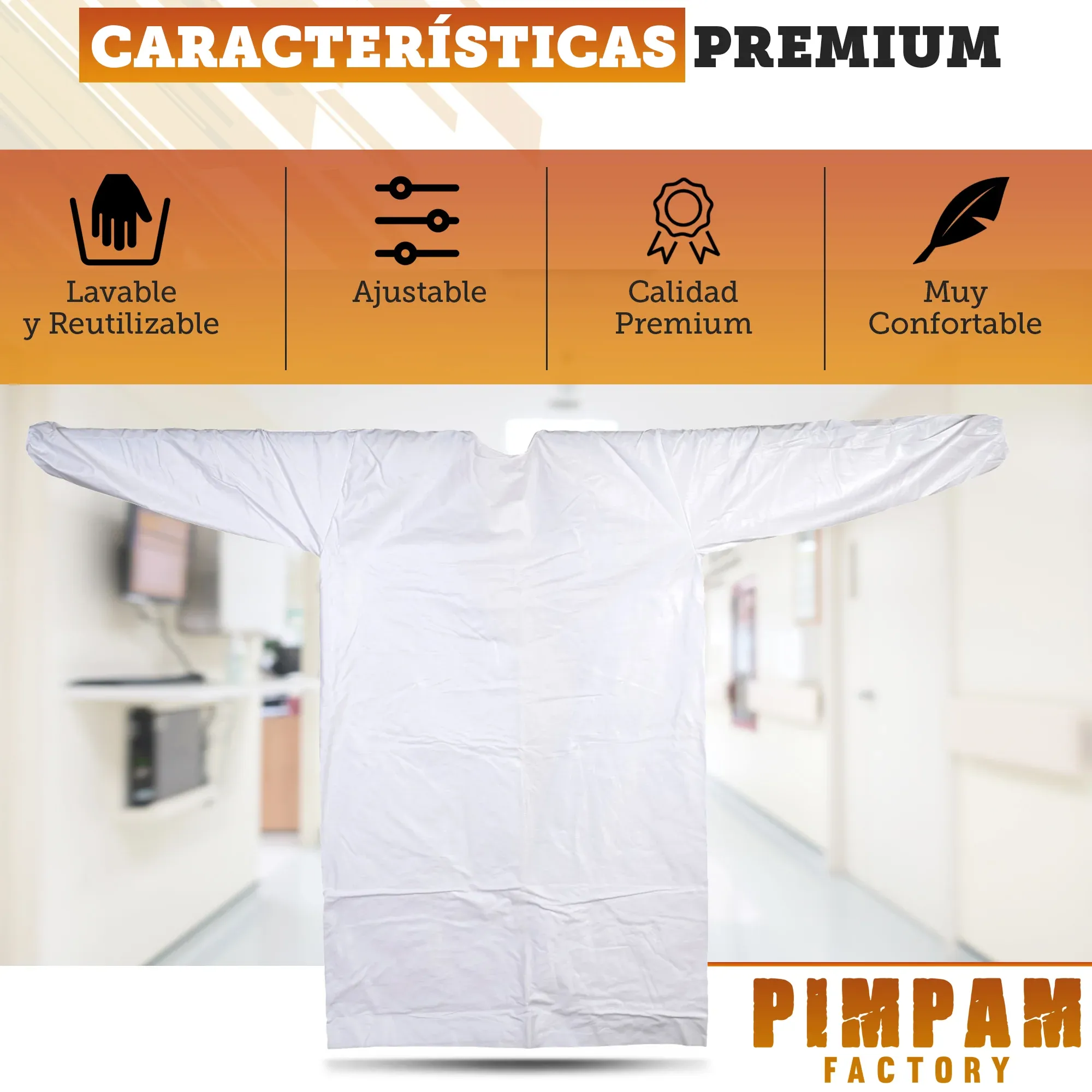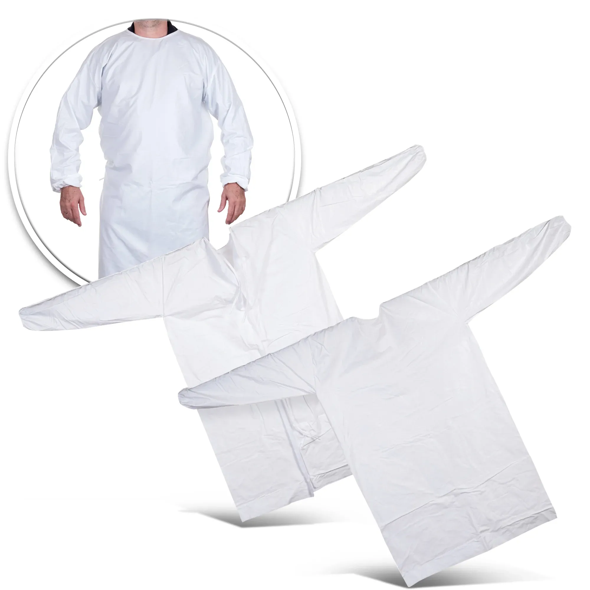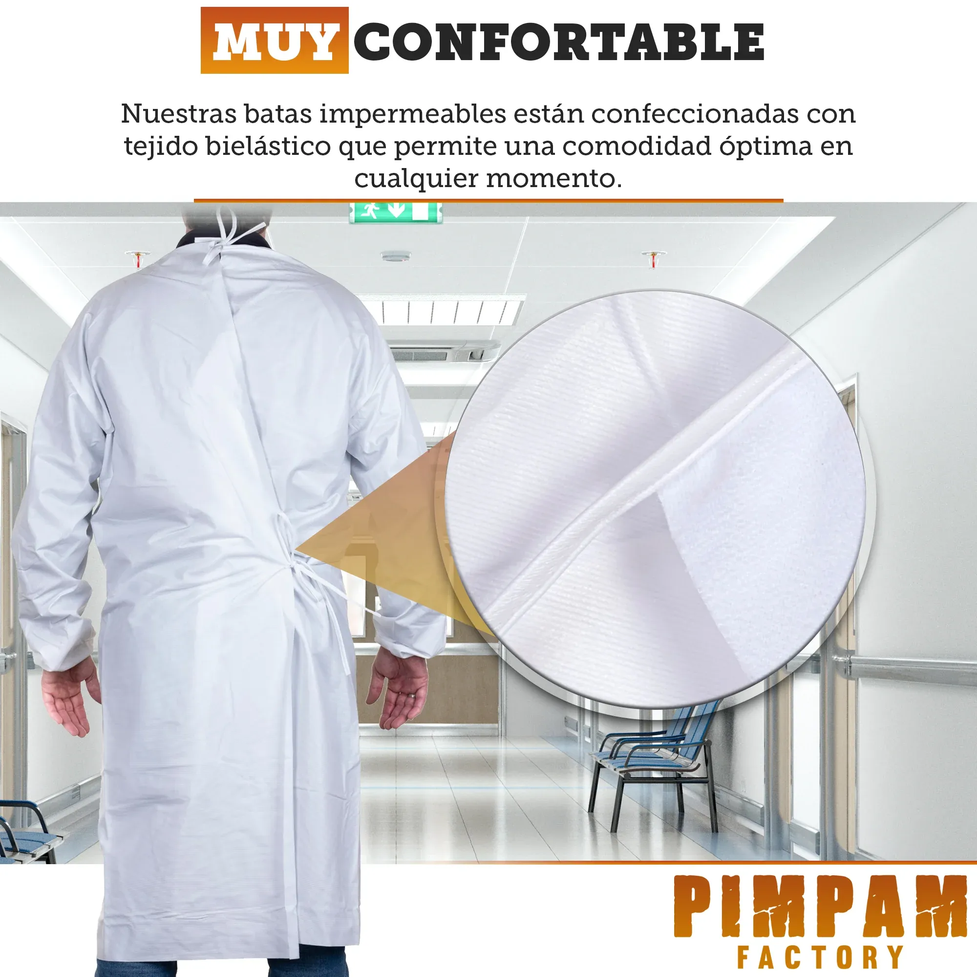 💧 IMPERMEABLES y TRANSPIRABLES: Todas nuestras batas reutilizables están fabricadas con microfibra de poliéster laminada con poliuretano que permite una total impermeabilización y a la vez una buena transpiración.