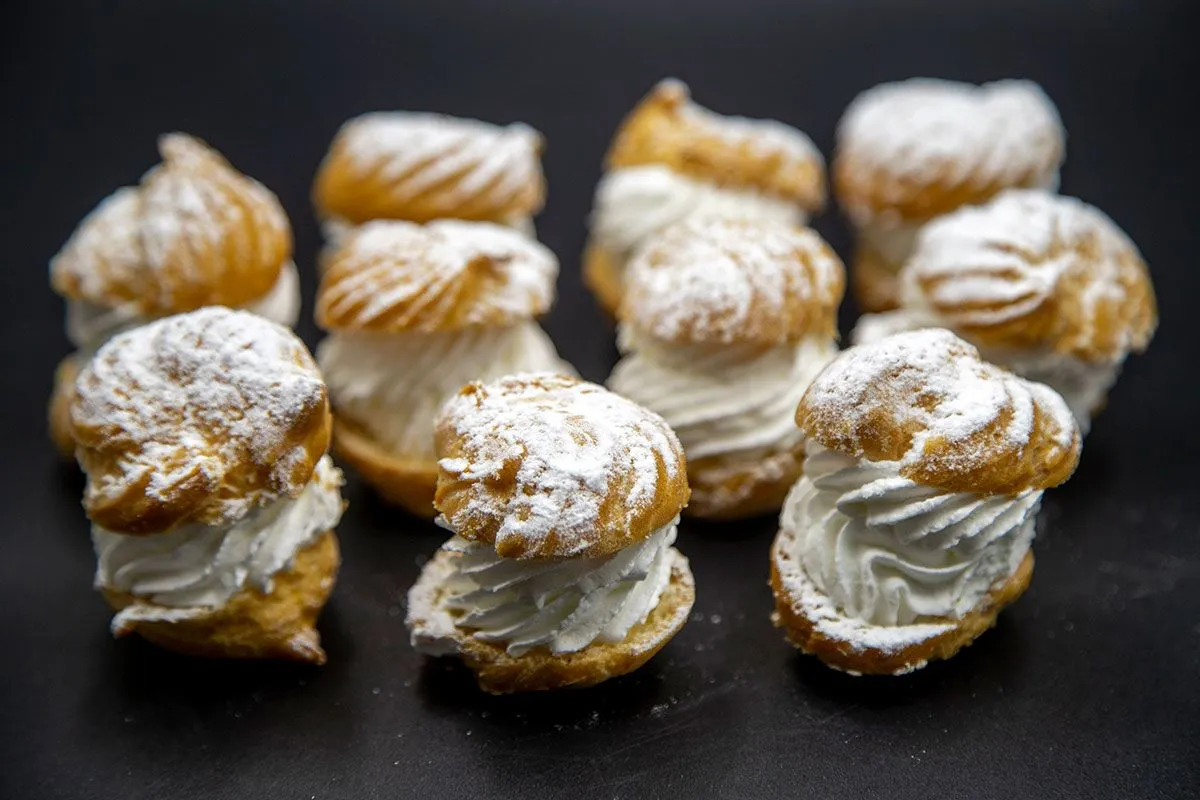 Harina, huevo, mantequilla, agua, nata y azúcar