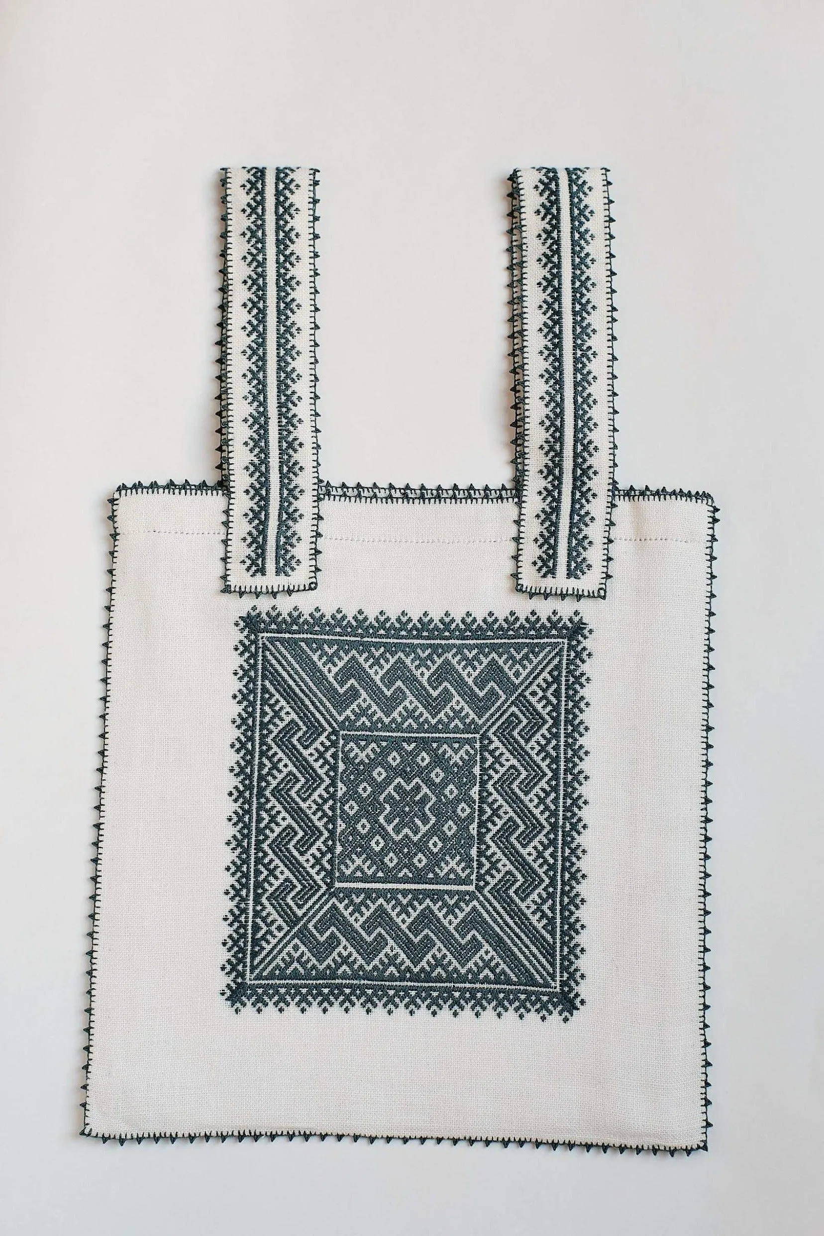 Bolso de lino confeccionado y bordado a mano, con la técnica del tejidíllo y rodeado de piquíllos. El original de esta exquisita bolsa de fibras naturales esta basada en una pieza antigua de familia. Este bolso ha sido tejido por las mujeres de la provincia de Toledo.