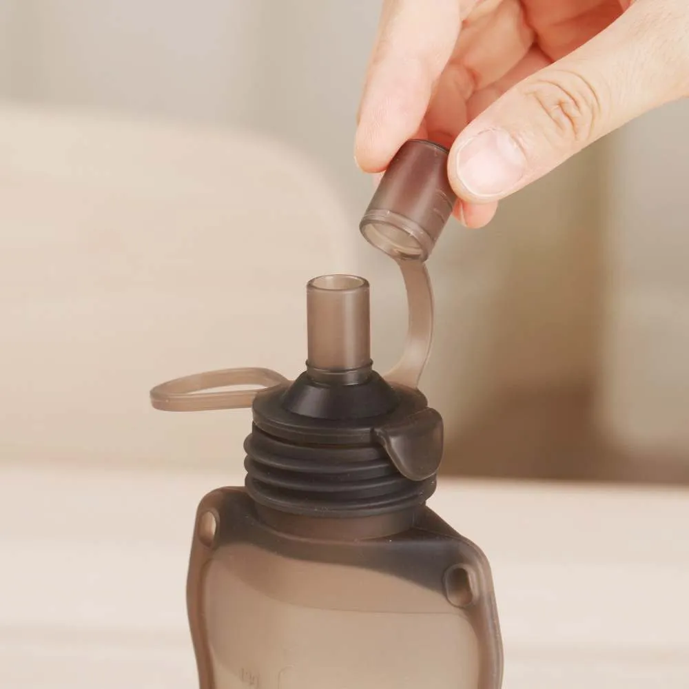 Con tapón de silicona antiderrames, asegura el cierre hermético de la bolsa.