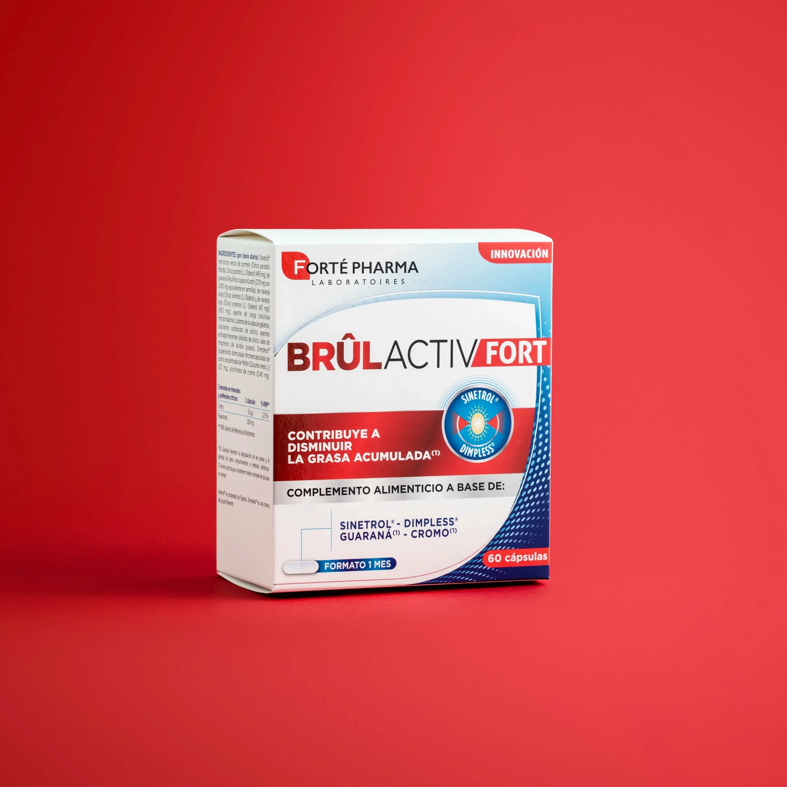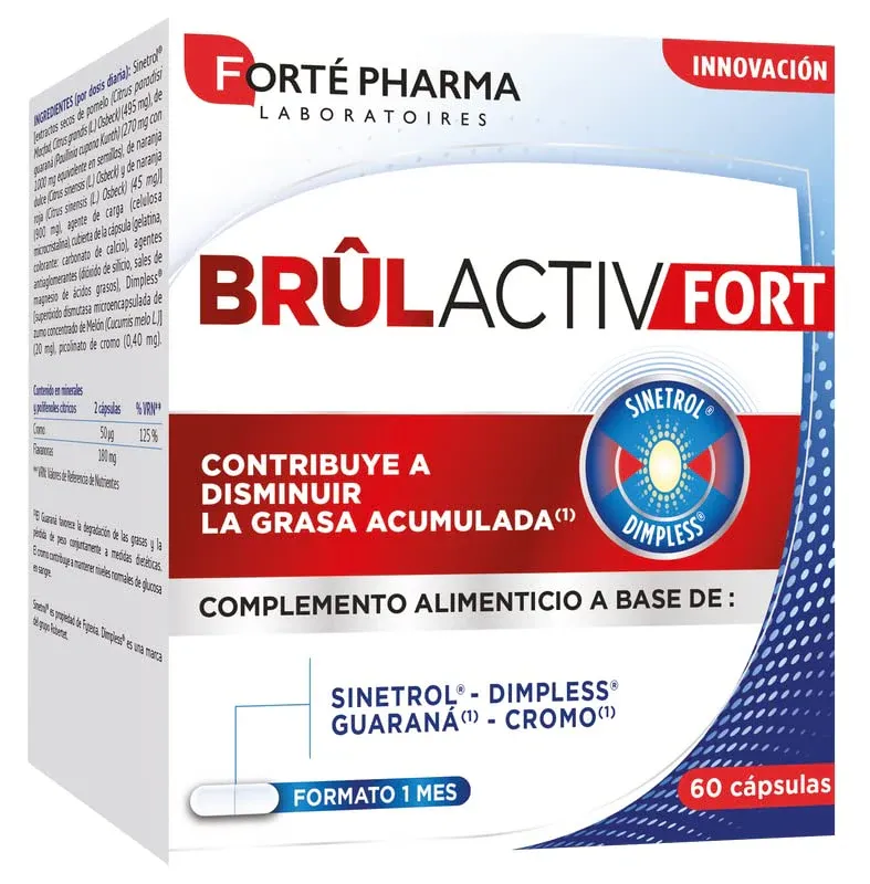 BRÛLACTIV FORT es un complemento alimenticio a base de Sinetrol®, Dimpless®, guaraná y cromo.