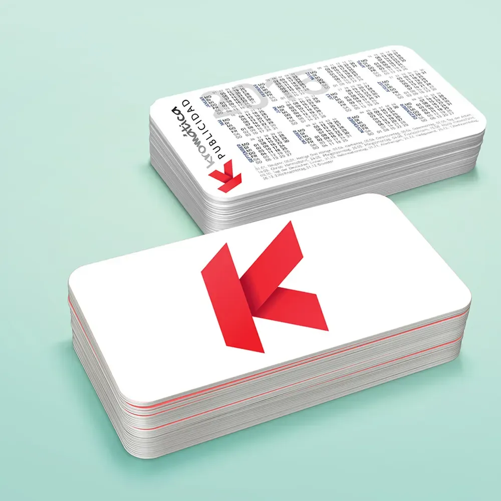 Colores: Impresión a todo color por las 2 caras. (cara trasera con calendario del año en curso).