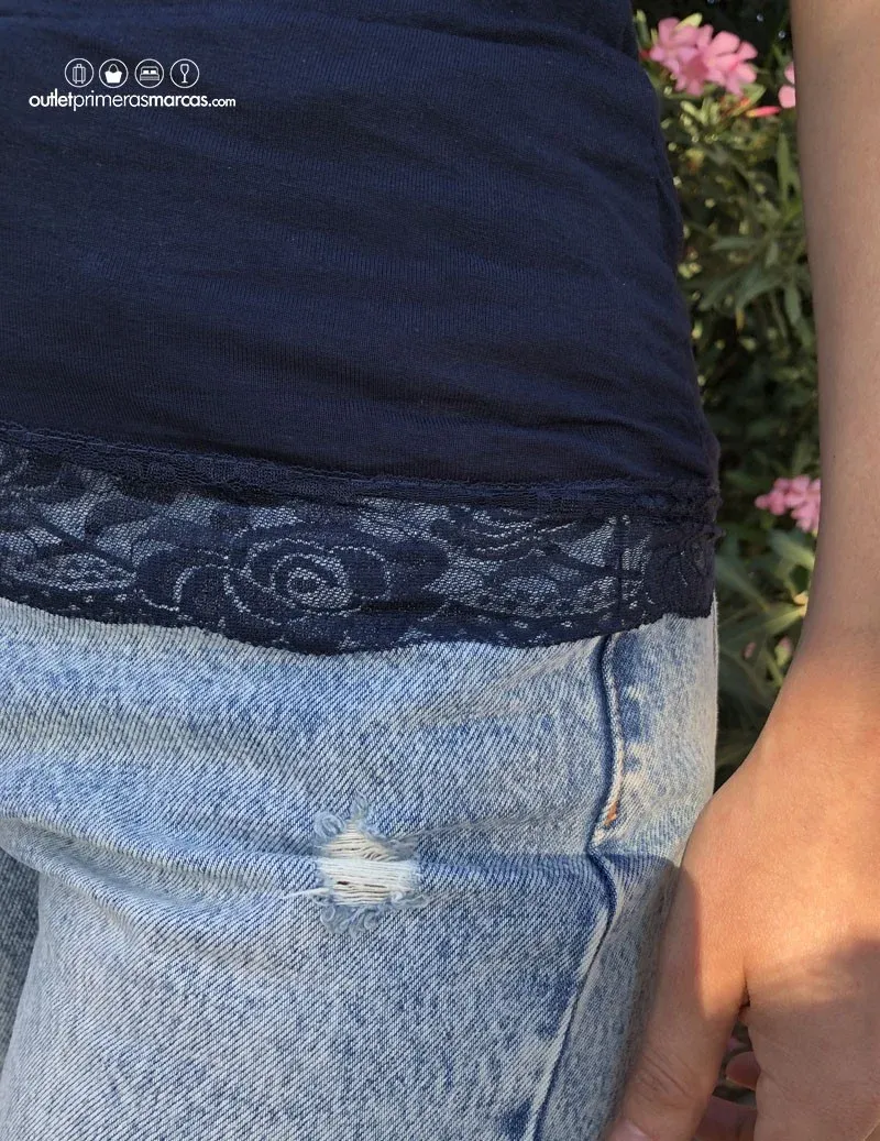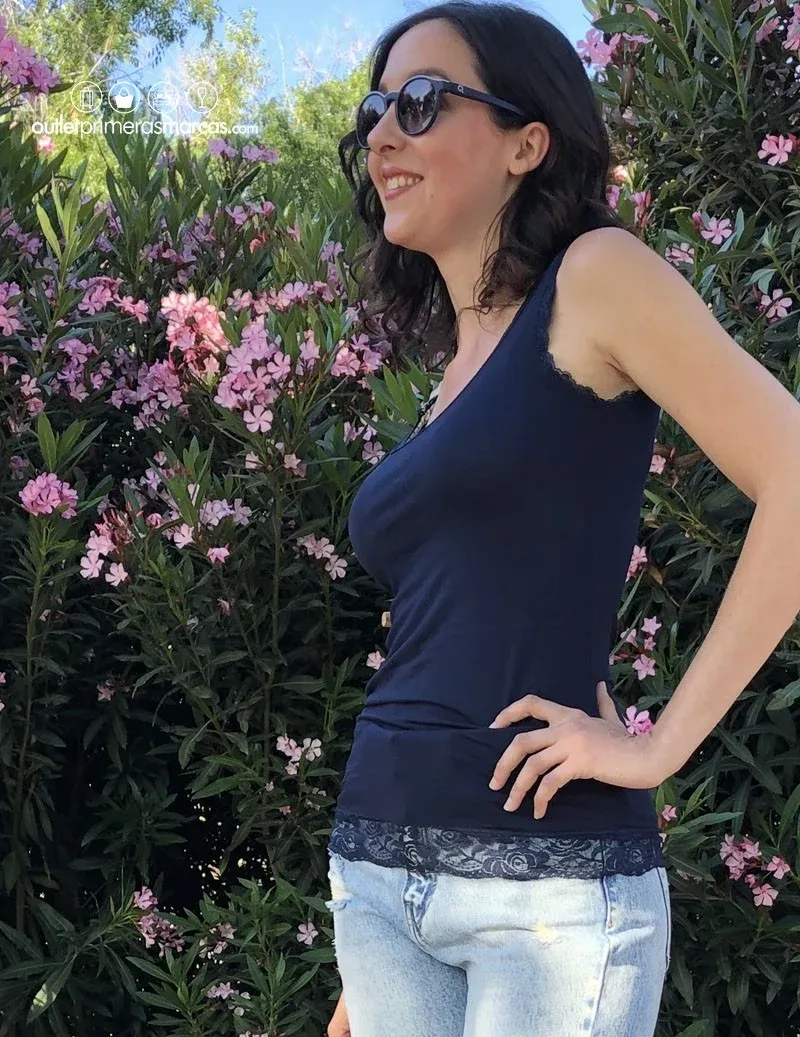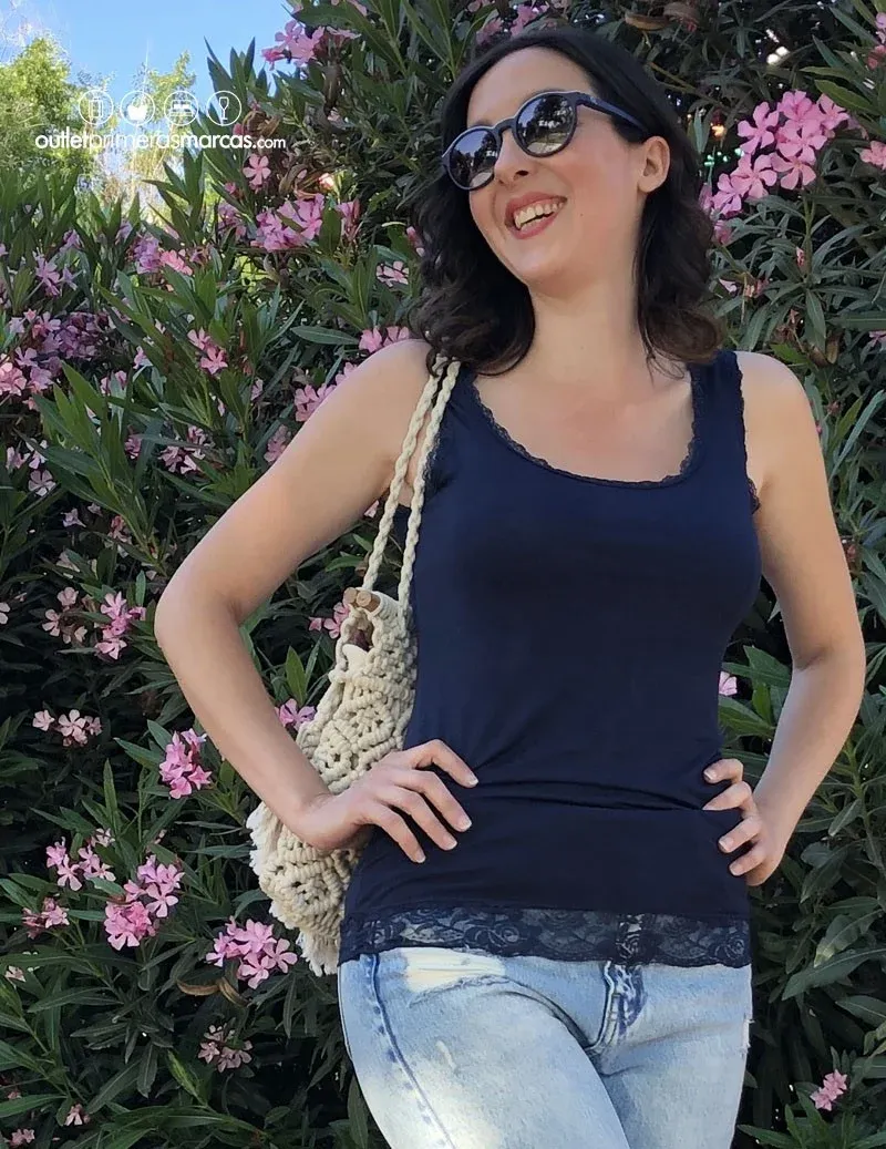 Camiseta básica con acabdos en lencería en los tirantes y la parte inferior.