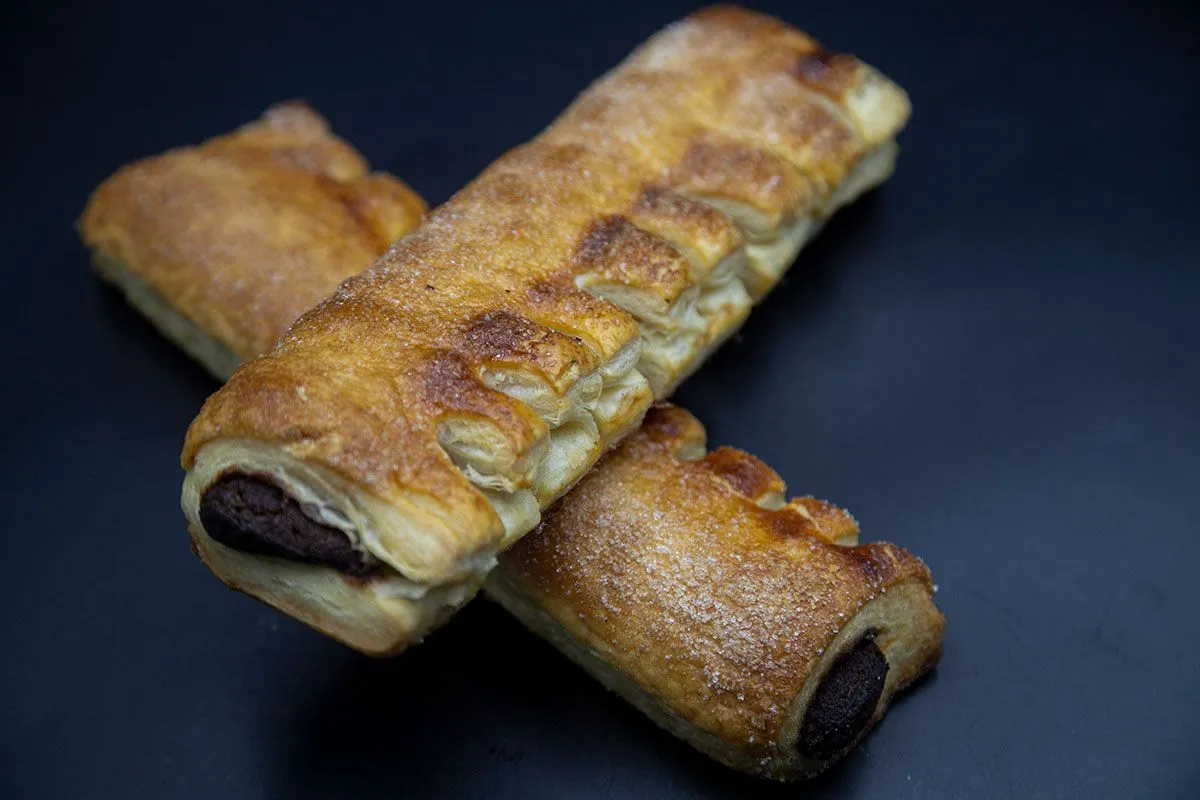 Harina de trigo, manteca de cerdo, mantequilla, sal, agua, chocolate