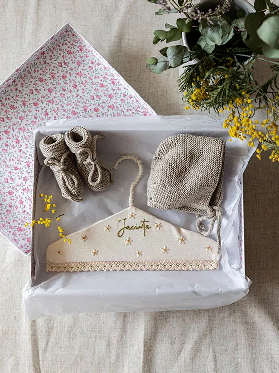 | Complemento canastilla | Cruz bordada, Natalicio, Nombre bordado, Percha, Virgen María |