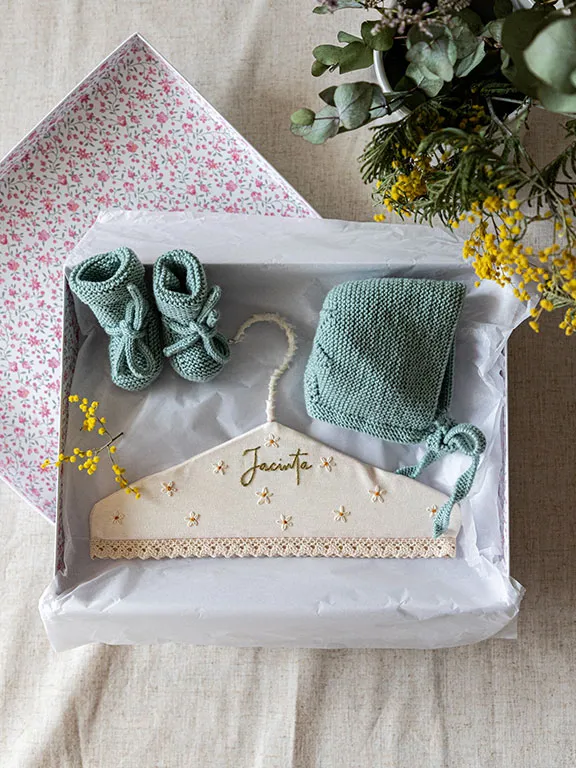 | Complemento canastilla | Cruz bordada, Natalicio, Nombre bordado, Percha, Virgen María |