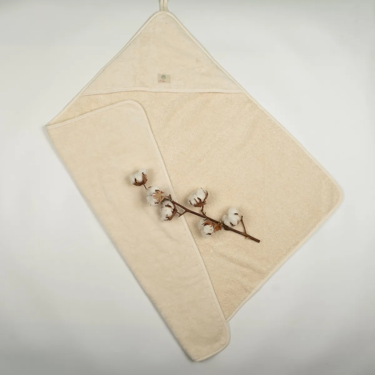 Capa de baño de baño con capucha, de algodón ecológico certificado GOTS y super cuidadosas con la delicada piel de tu bebé