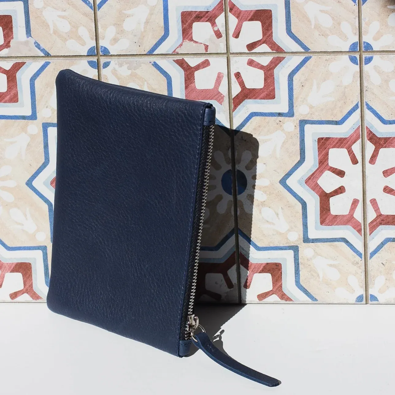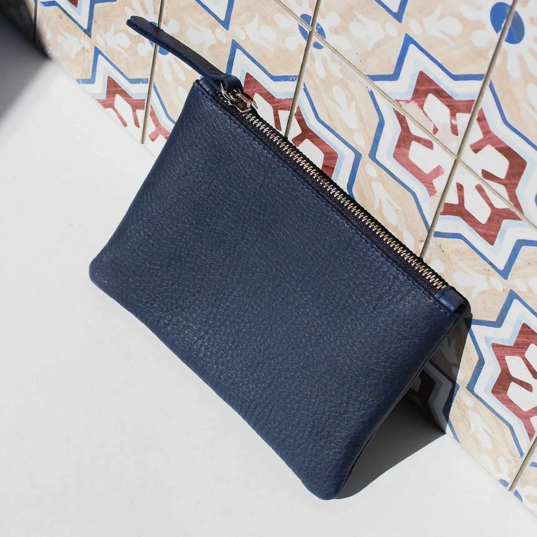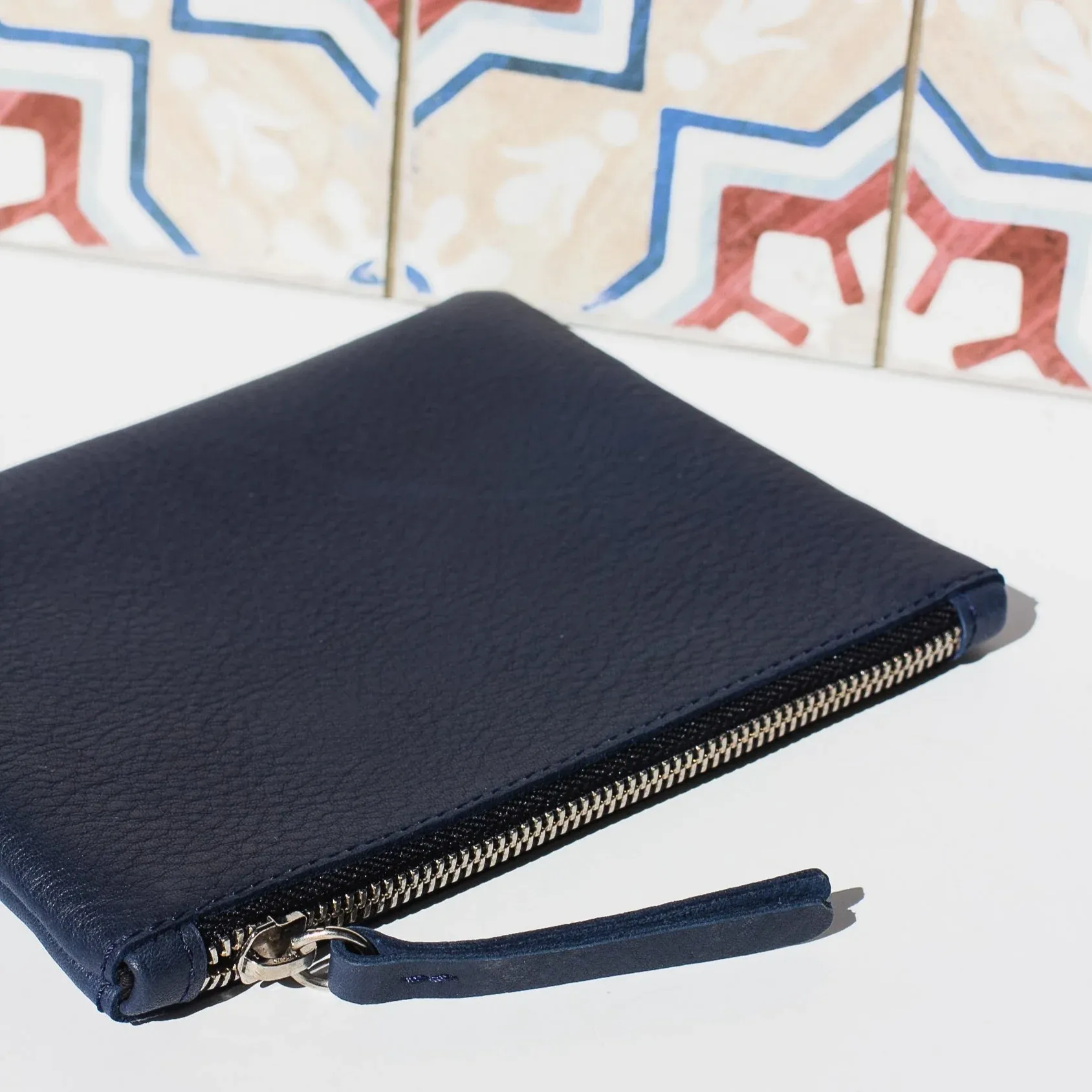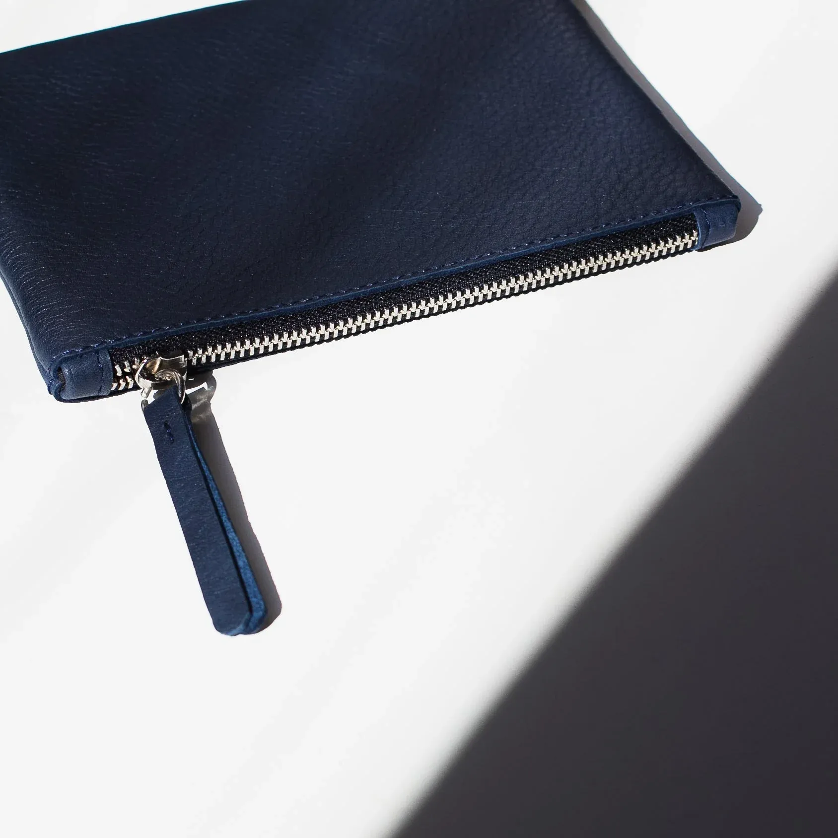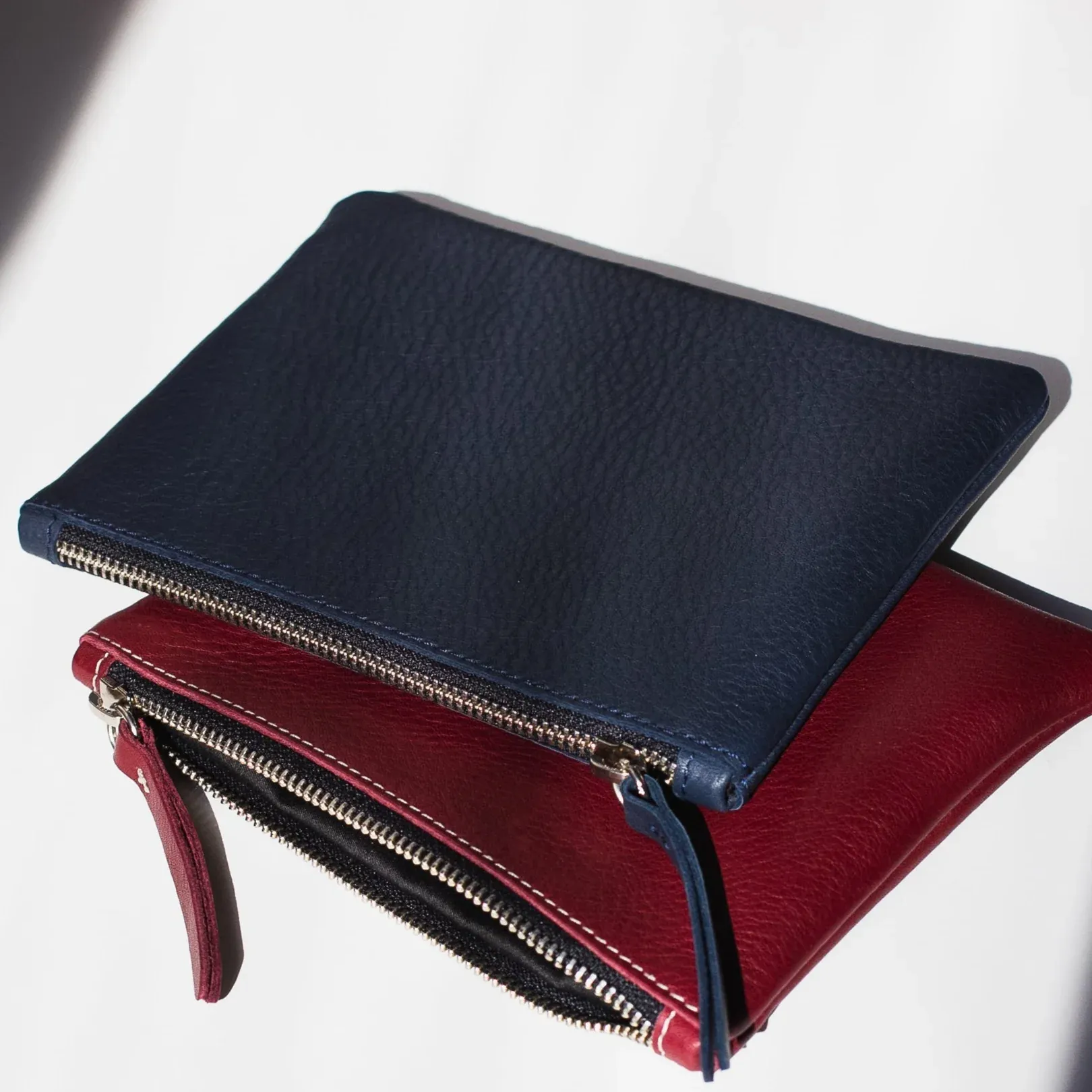 Practicidad para llevar dentro de los bolsos y que no se te pierda nada. La cremallera la abres con un asa más larga para mejor agarre. También de cuero.
