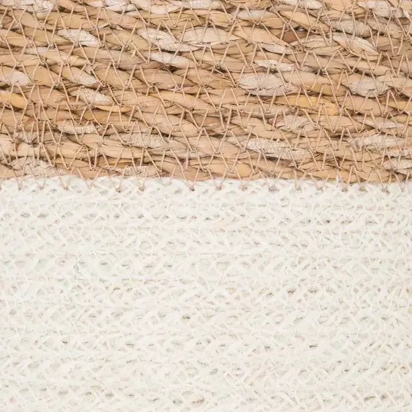 Cesta fabricada en junco y algas marinas en color natural y blanco. Disponible en cuatro tañamos.