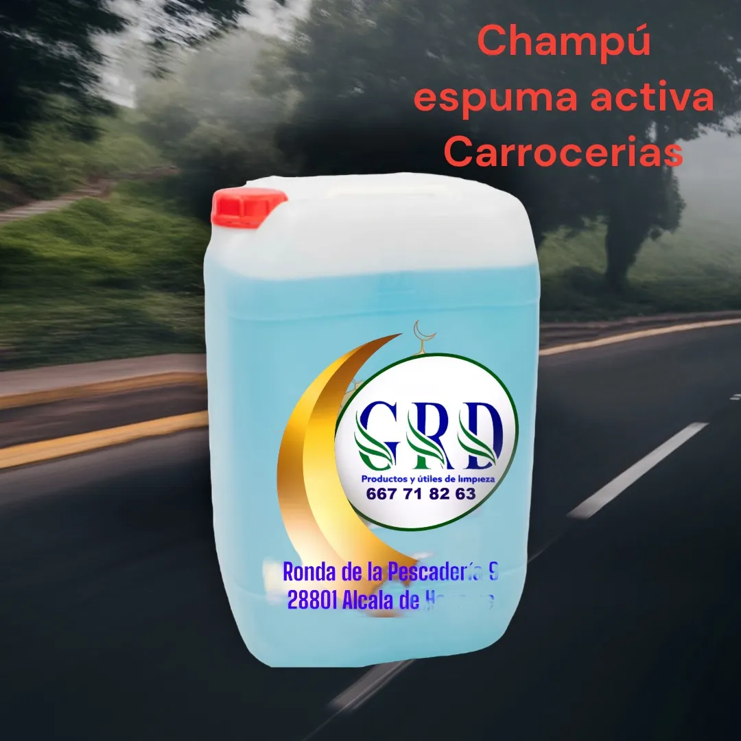 Champú Carrocerías manual es un detergente neutro para el lavado manual o a máquina de carrocerías. Su formulación a base de una mezcla compleja de tensioactivos aniónicos y no iónicos, secuestrantes y humectantes le hace eficaz contra manchas de distinta naturaleza.