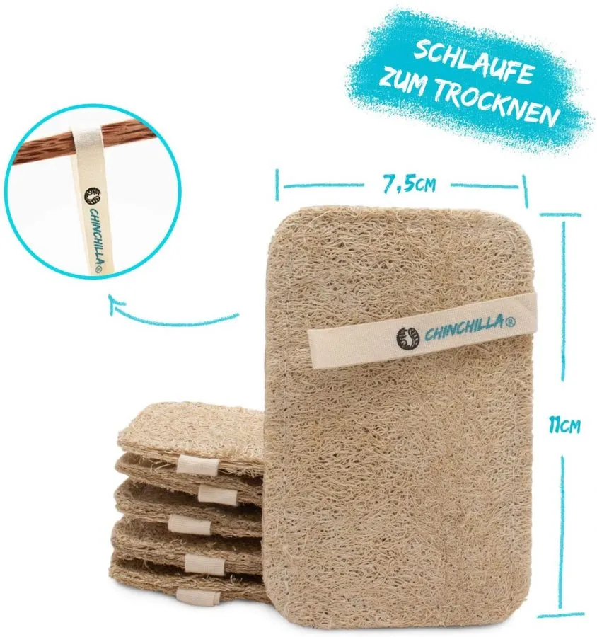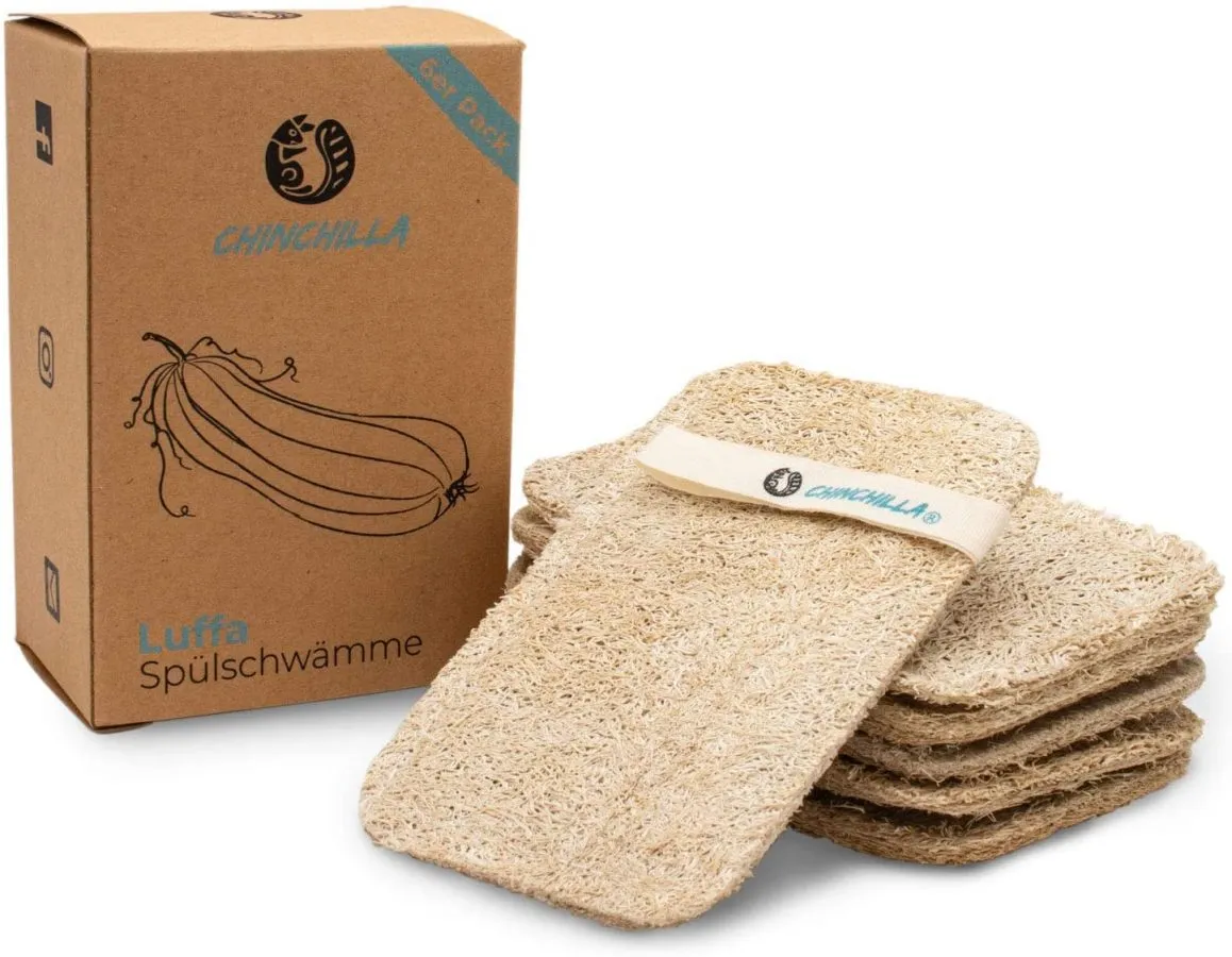 Chinchilla® 6 esponjas de lufa para la cocina | Esponjas para platos biodegradables, compostables, veganas y sostenibles | Hogar y camping