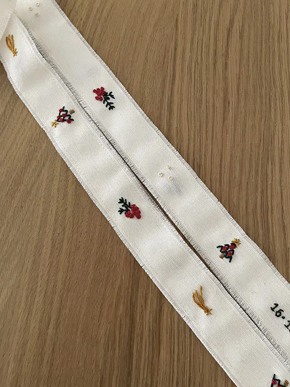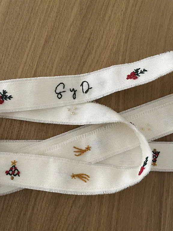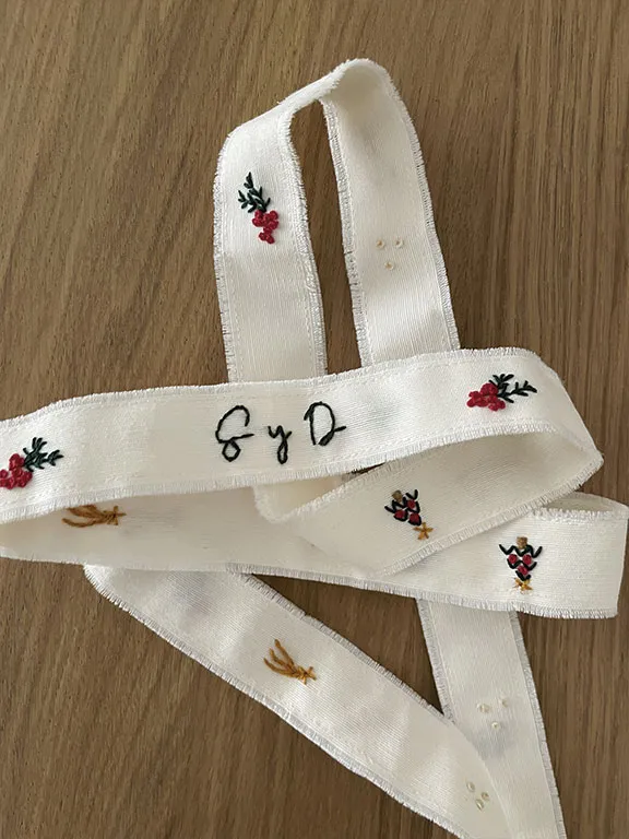 En ella van bordadas las iniciales de los novios o de la novia. La tipografía de la fecha irá bordada igual que la tipografía de las iniciales. (La fecha de las fotos es un diseño antiguo).