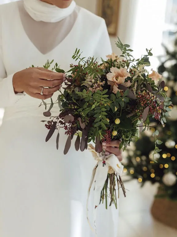Cinta de ramo de estilo rústico y con un diseño navideño.