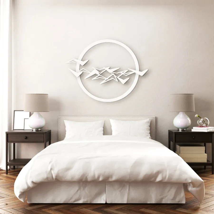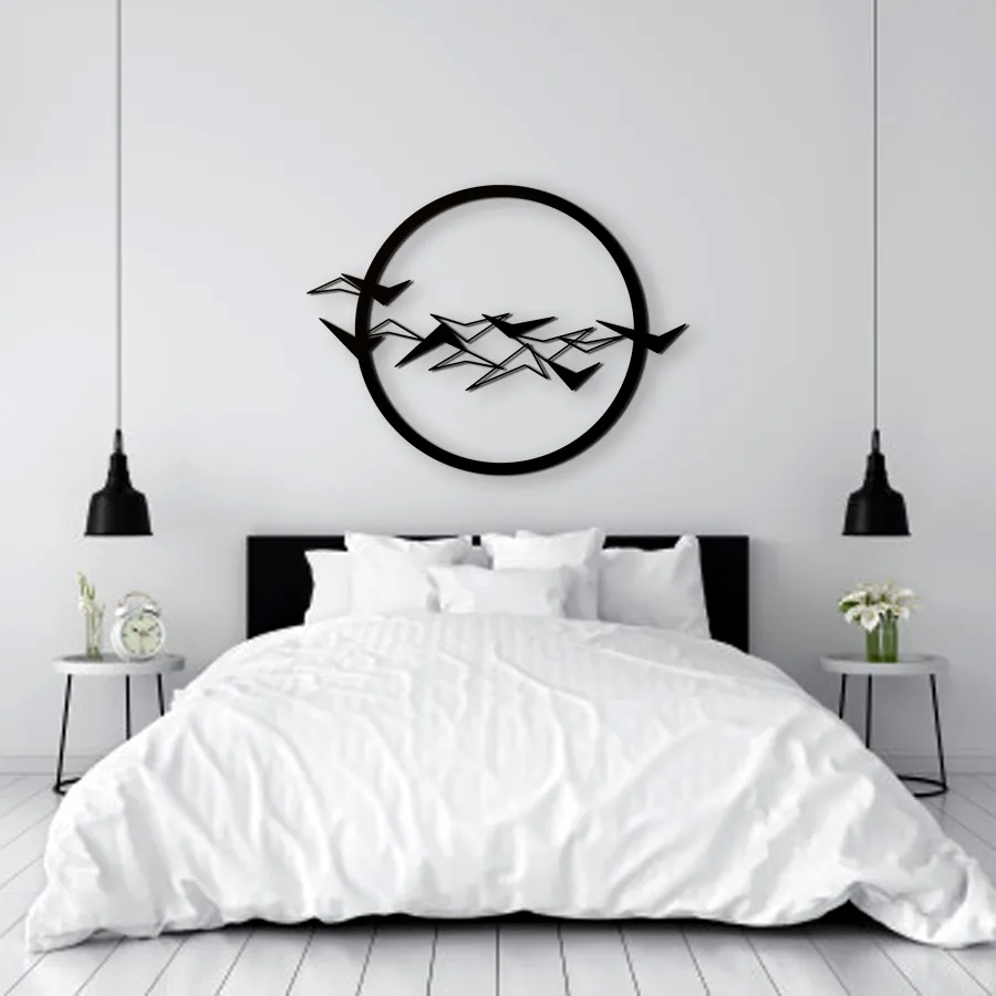 Es una pieza perfecta para decorar tu hogar y crear un ambiente calmado y armonioso con el vuelo de las aves. Hemos creado una pieza tridimensional en 3 niveles para dar textura y relieve a tu decoración de pared. La pieza está fabricada en DM y puedes elegir uno de los tres colores de la tienda o solicitar por correo el color que desees, también podemos grabar tu nombre, el de tu familia u amigos en las aves y así transformarla  en una pieza única sólo para ti.