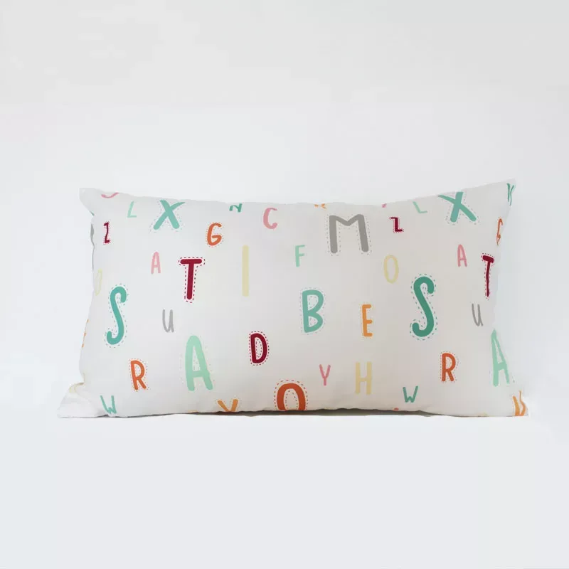 El cojín infantil diseño abecedario, esta coordinado con otros artículos infantiles con el mismo dibujo. Su tejido es de lona 100% poliéster, no absorbe olores, no destiñe los colores y es de fácil lavado. Se puede separar la funda del relleno por una cremallera invisible de alta calidad.