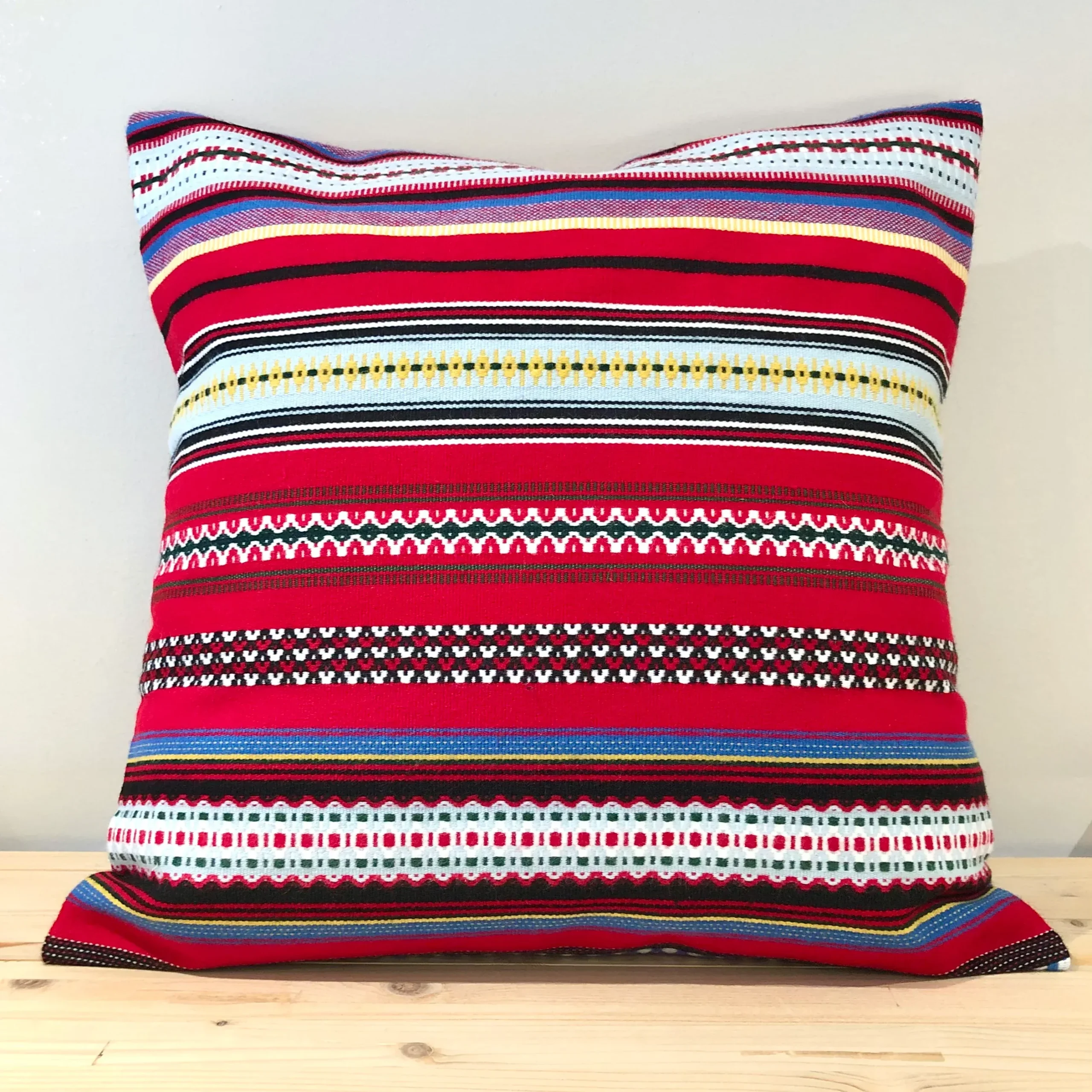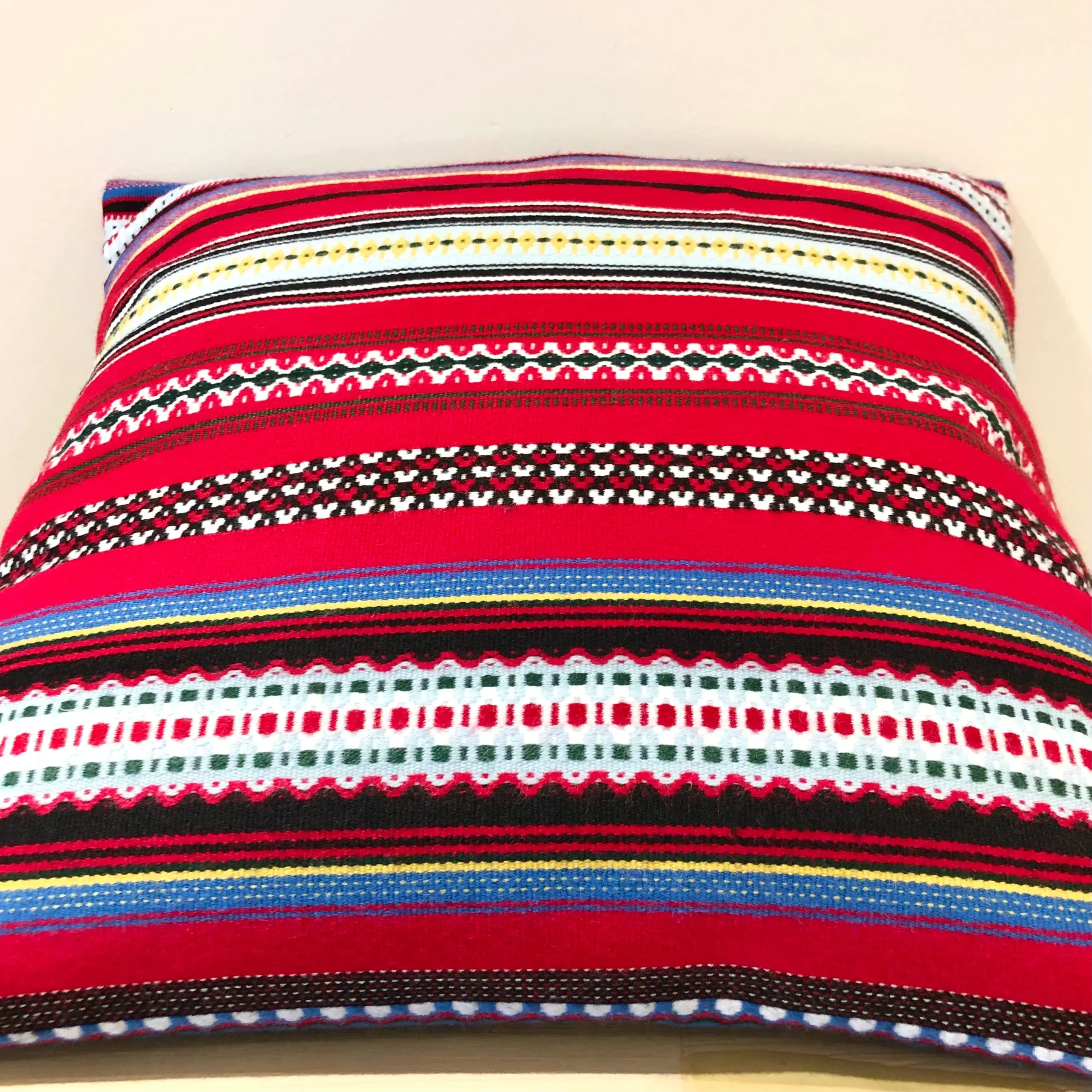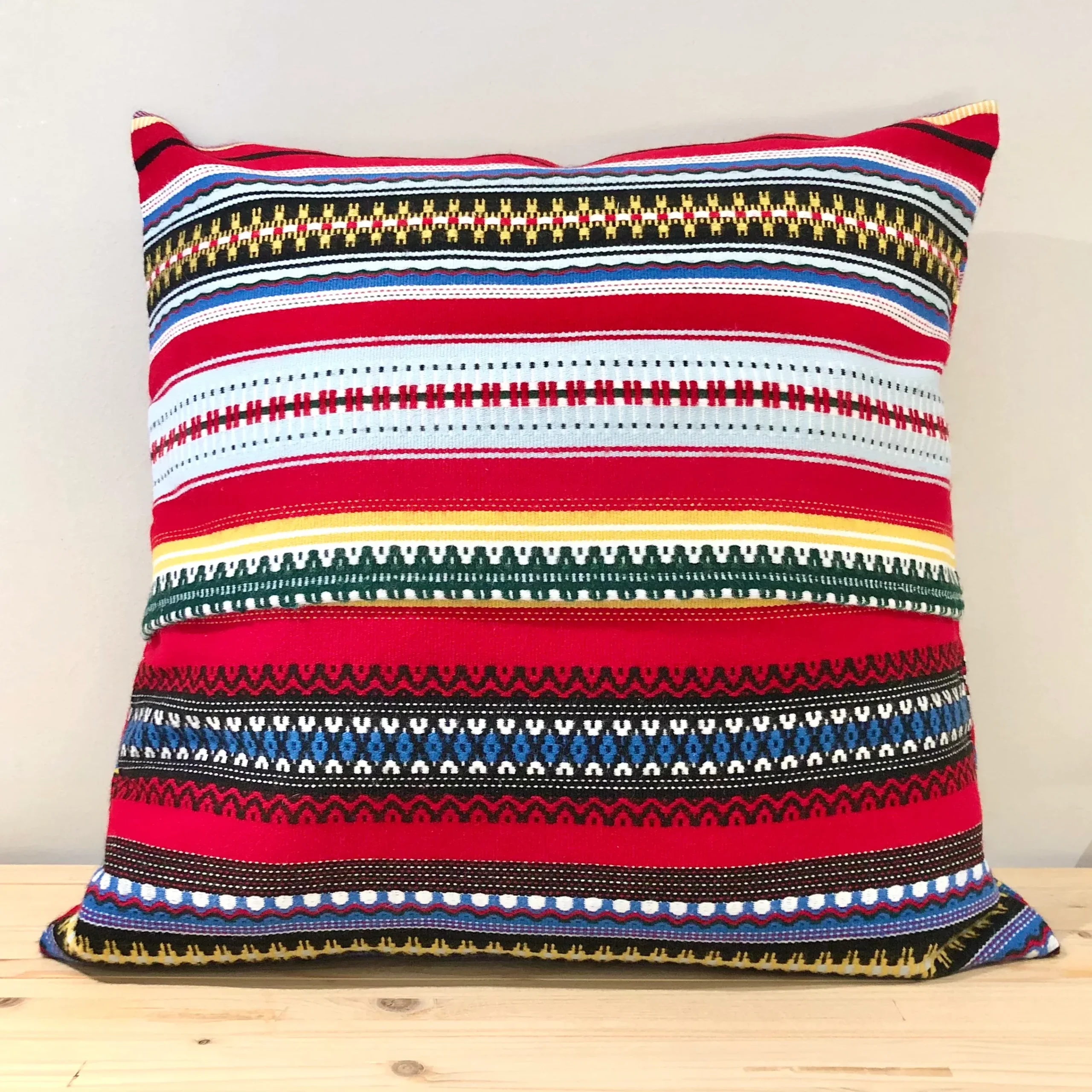 Cada funda de cojín tiene una riqueza de colores y diseños casi irrepetible de una pieza a otra. Realmente son tejidos para admirar y disfrutar.