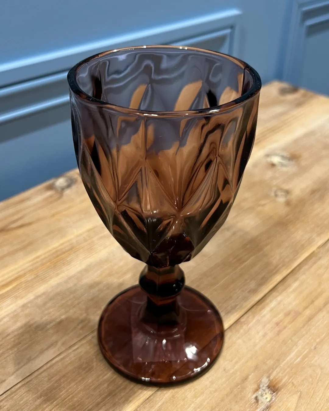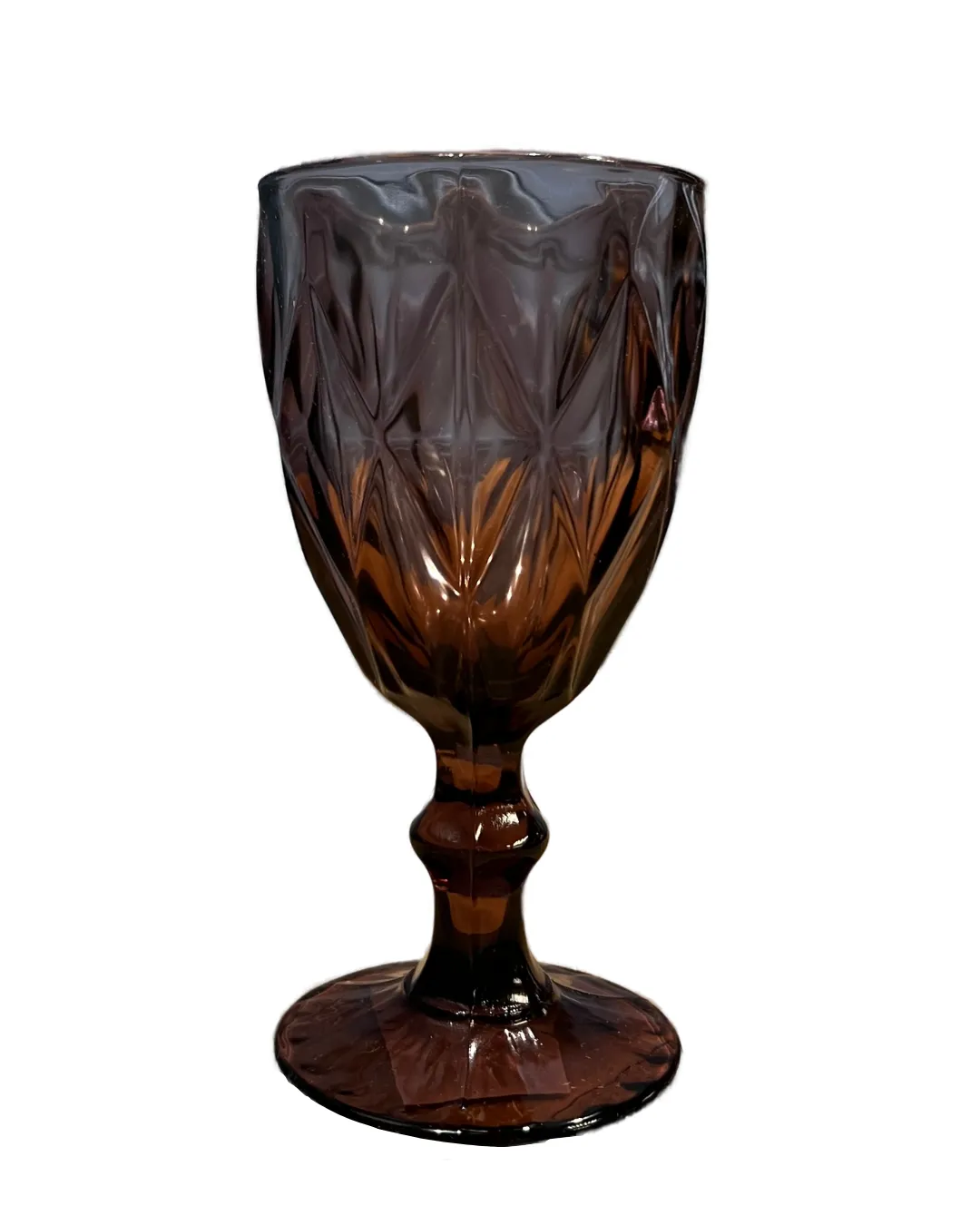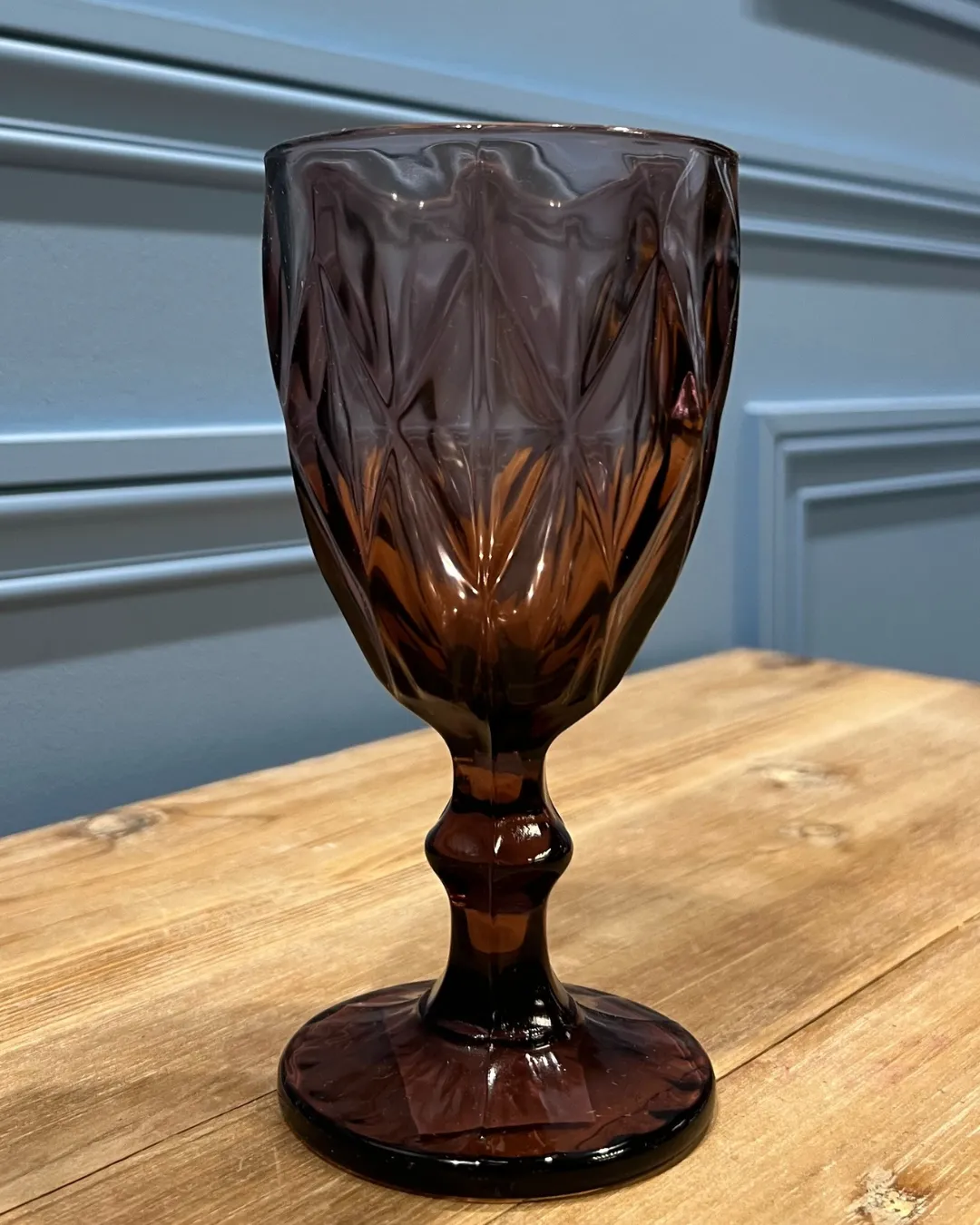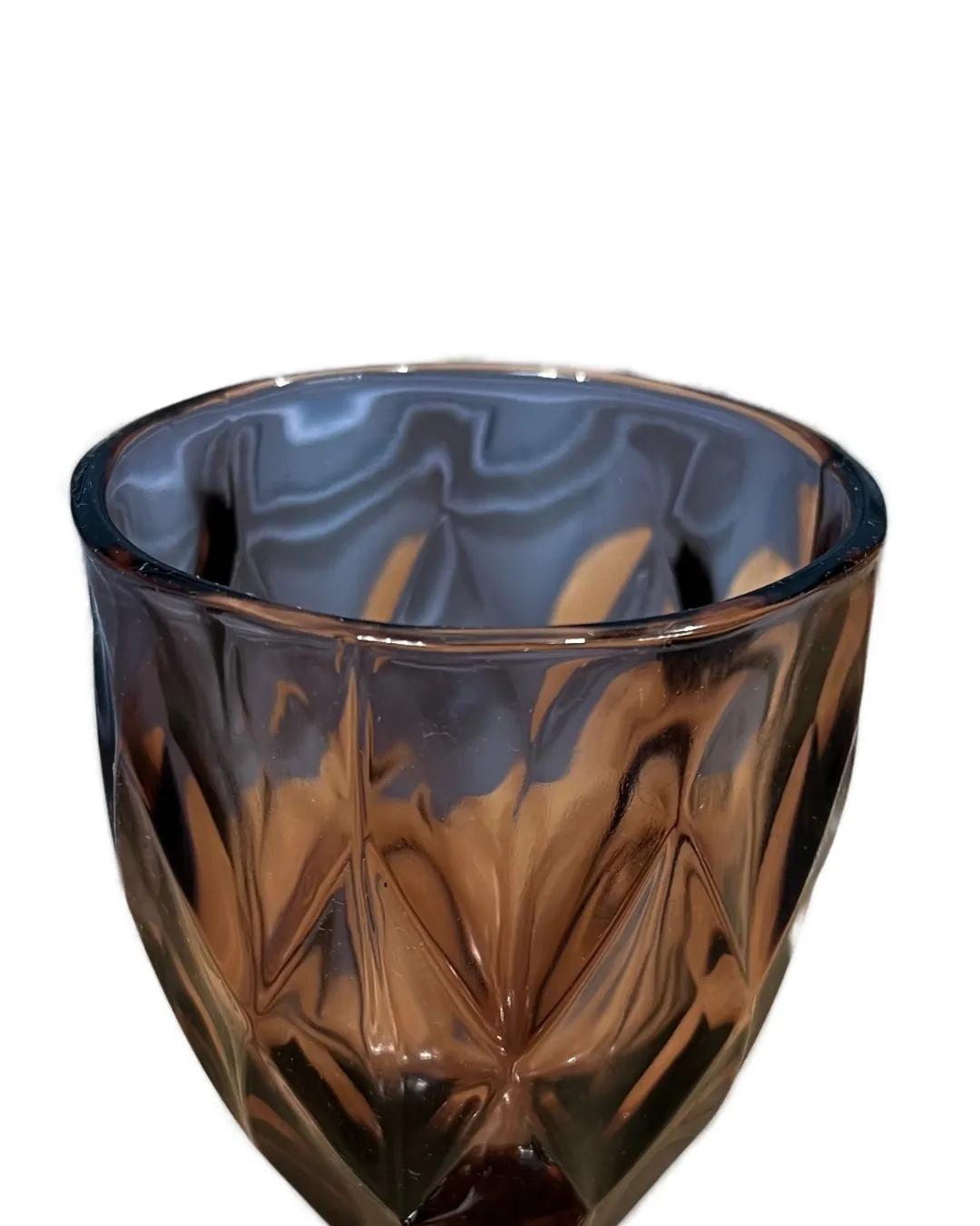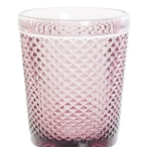 Copa de cristal con relieve en color granate. Medidas 8,7 x 8,7 x 17 cm. Capacidad 325 ml. Apto para lavavajillas.