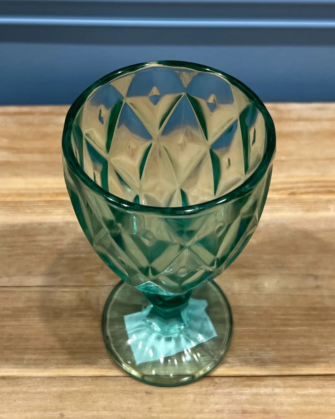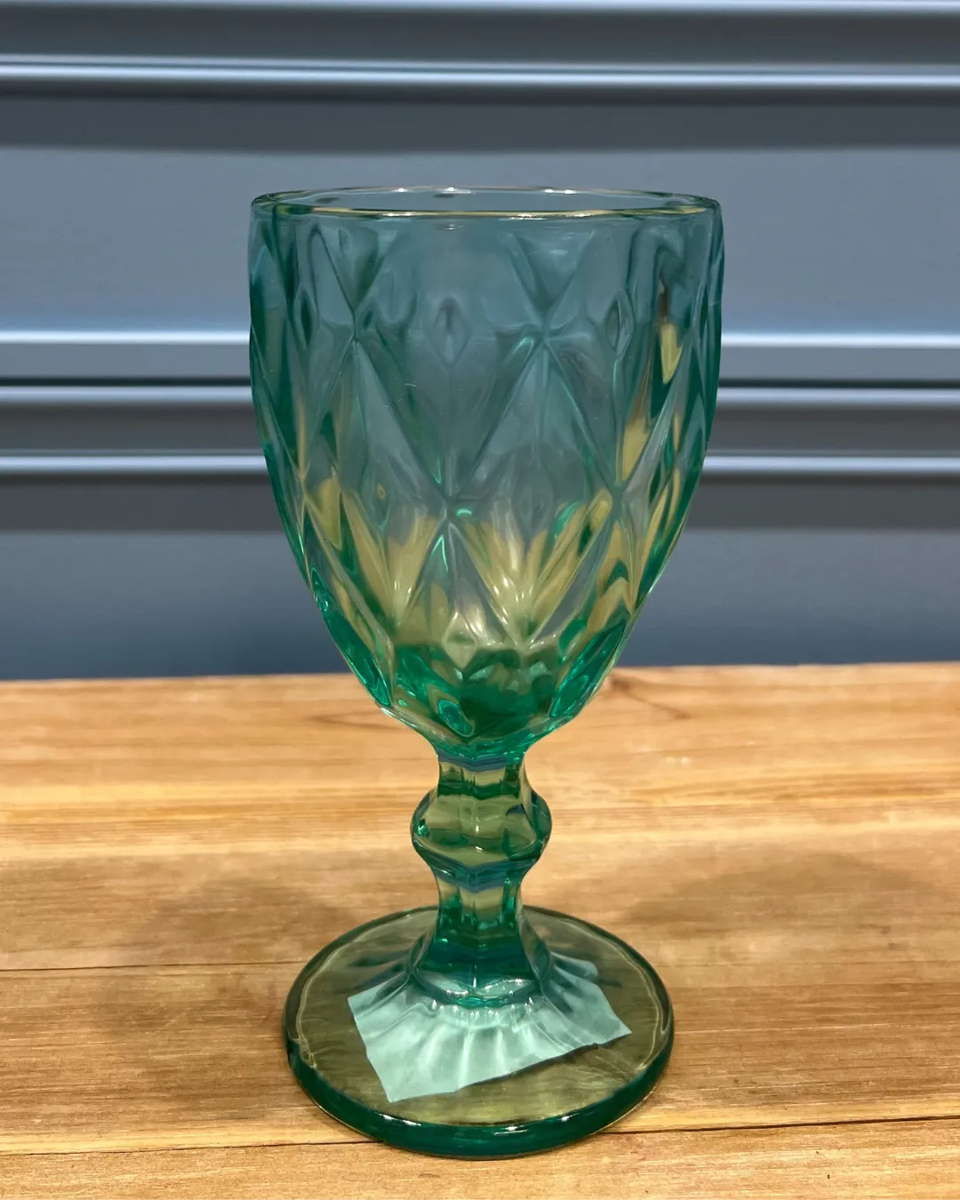 Copa de cristal con relieve en color turquesa. Medidas 8,7 x 8,7 x 17 cm. Capacidad 325 ml. Apto para lavavajillas.