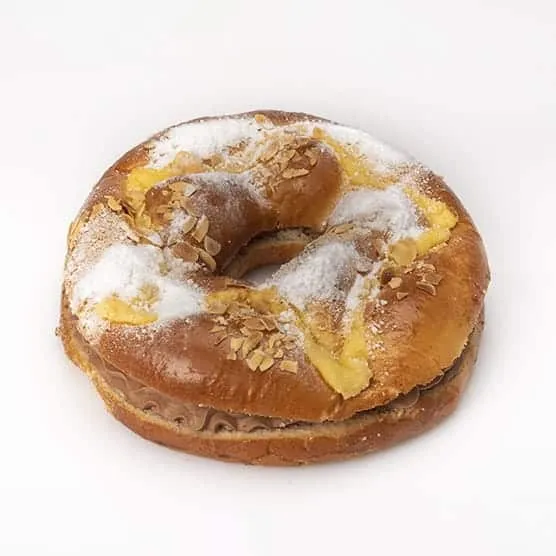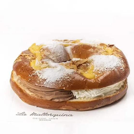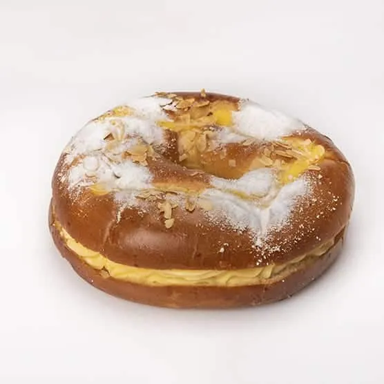 La Corona de la Almudena es una variación del Roscón de Reyes y nació en honor a la Virgen de la Almudena, que además de ser la patrona de la Villa de Madrid, es también la patrona del gremio de pastelería. Basado en una sencilla receta, este bollo es similar al roscón de Reyes en forma e ingredientes, si bien las coronas son más pequeñas, no llevan agua de azahar, ni naranja-limón y sustituyen sus adornos de frutas escarchadas por detalles de crema, almendras. Eso sí, también pueden estar rellenos de crema, nata o trufa. Una delicia que no puedes perderte.